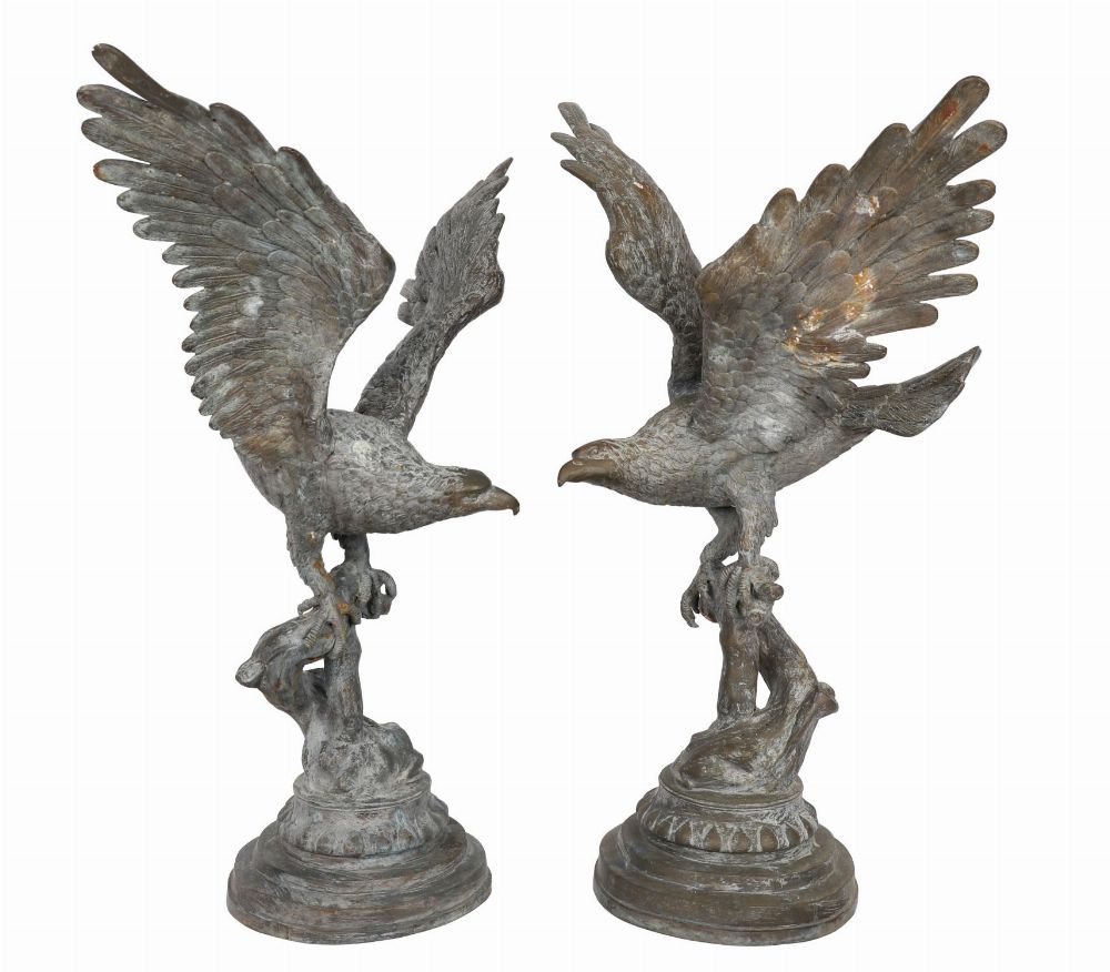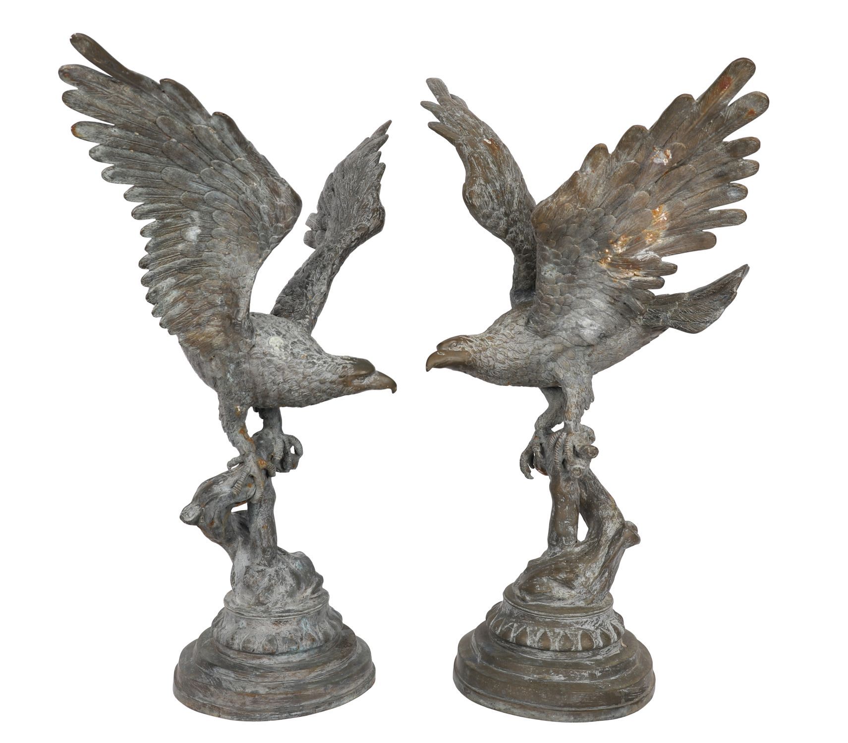 Lot 1526 PAIR OF LARGE SCULPTED BRONZE EAGLES