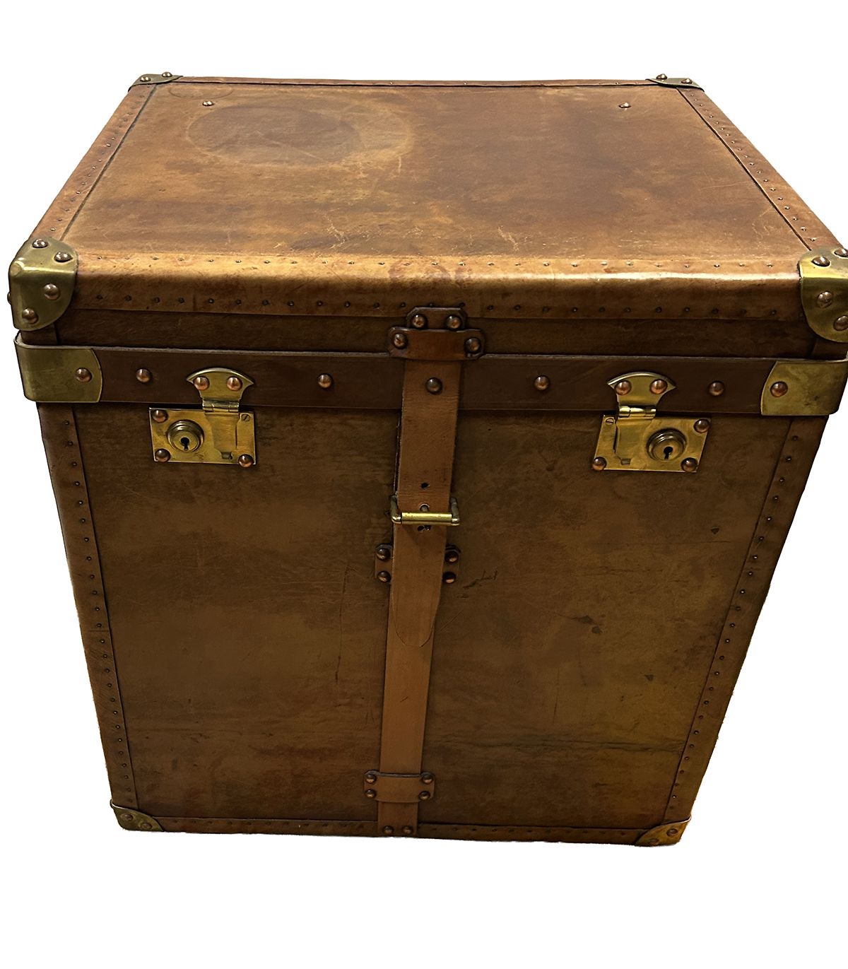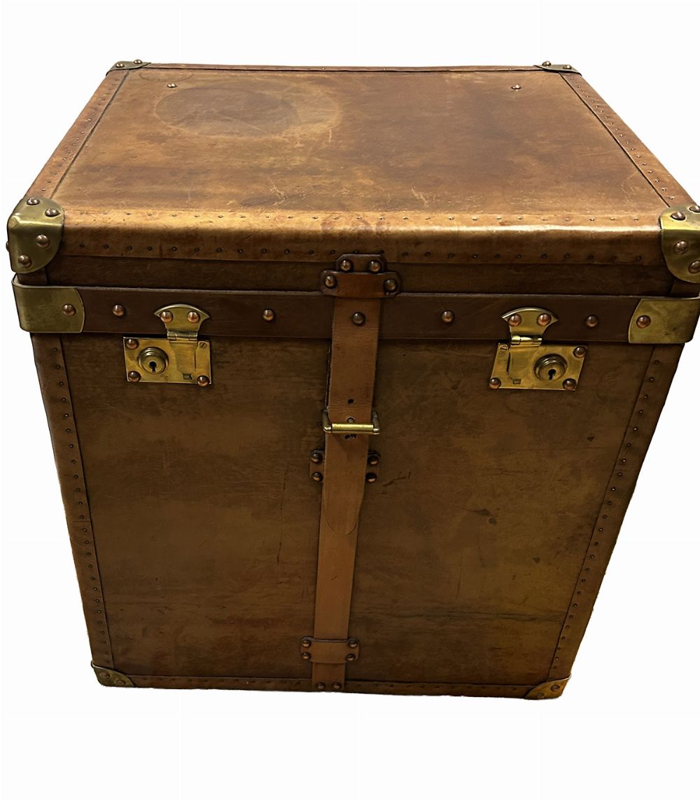 Lot 1017 PAIR OF LEATHER TRAVELLING TRUNKS