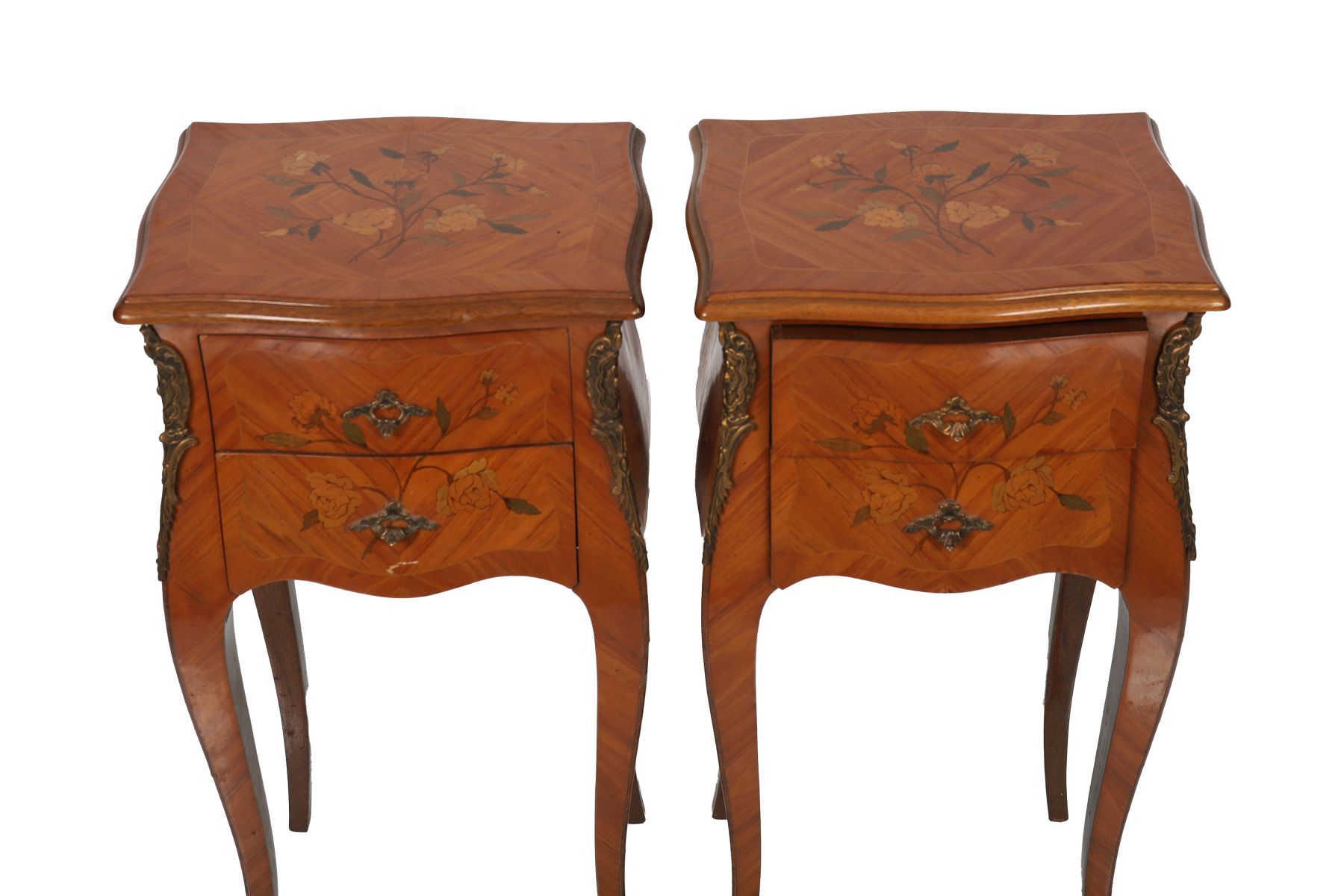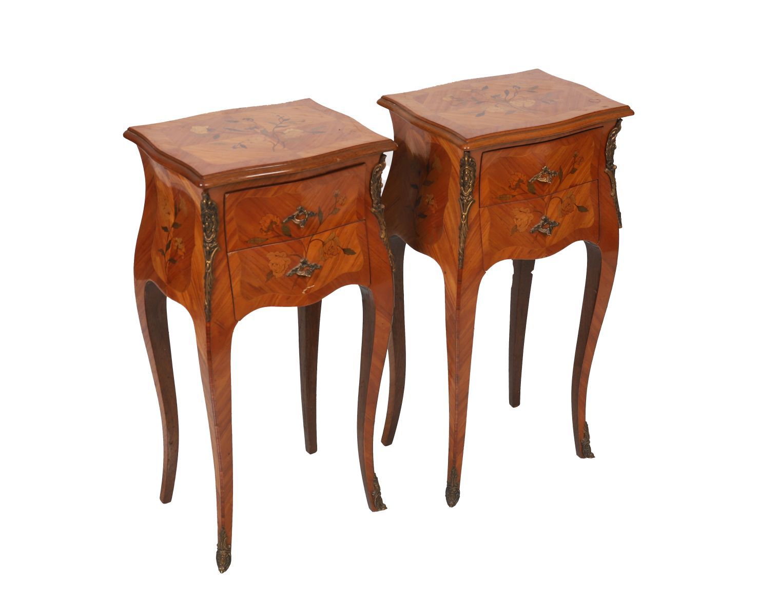 Lot 1251 PAIR OF LOUIS XV STYLE KINGWOOD AND MARQUETRY BEDSIDE CABINETS