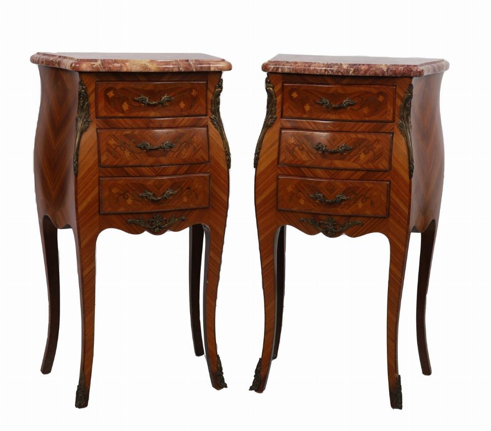 Lot 189 PAIR OF LOUIS XV STYLE KINGWOOD AND MARQUETRY BEDSIDE TABLES