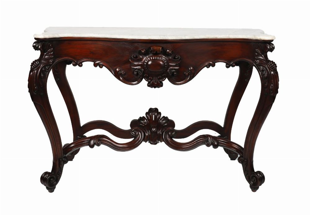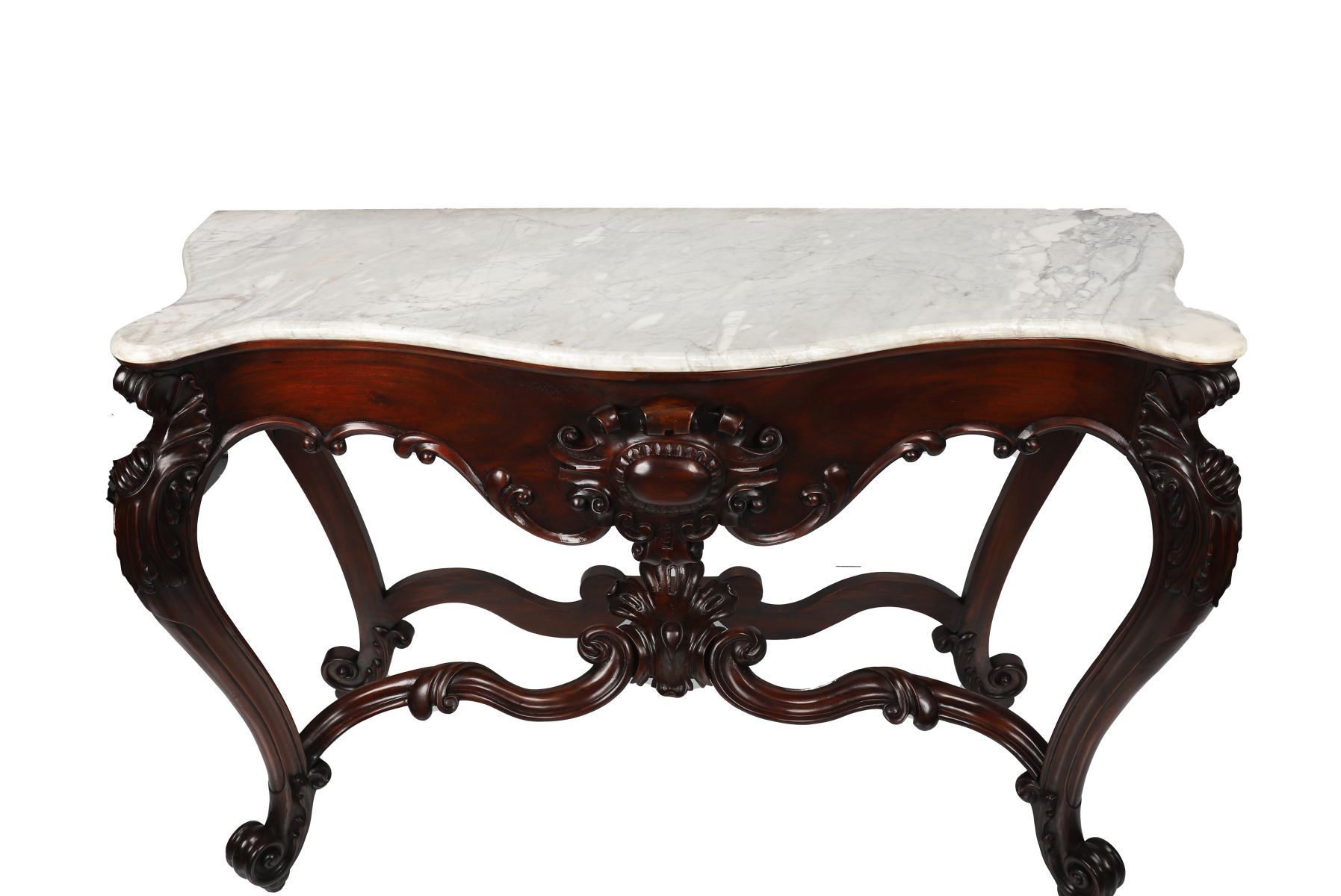 Lot 427 PAIR OF MAHOGANY CONSOLE TABLES WITH MARBLE TOPS, 19TH CENTURY