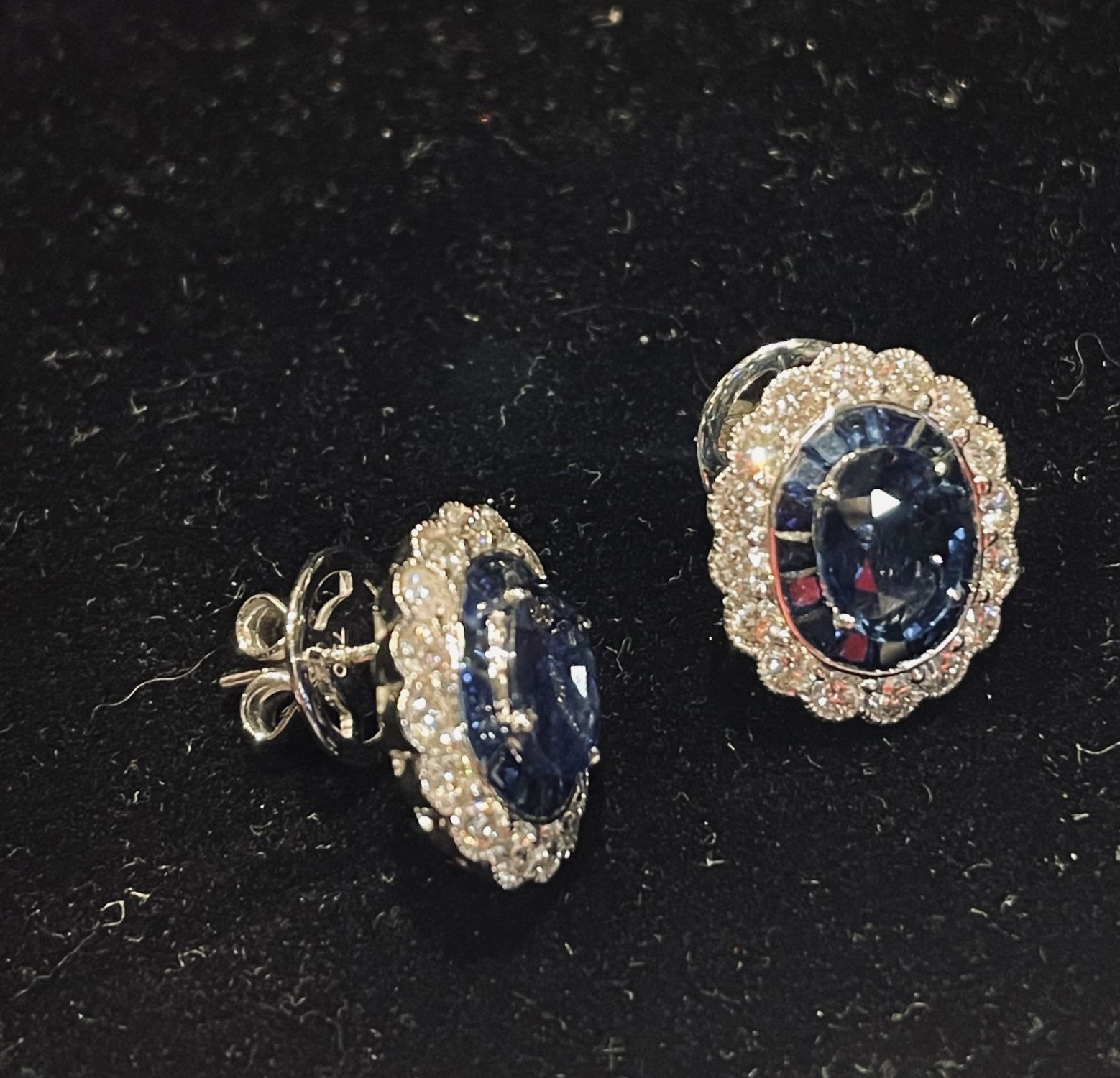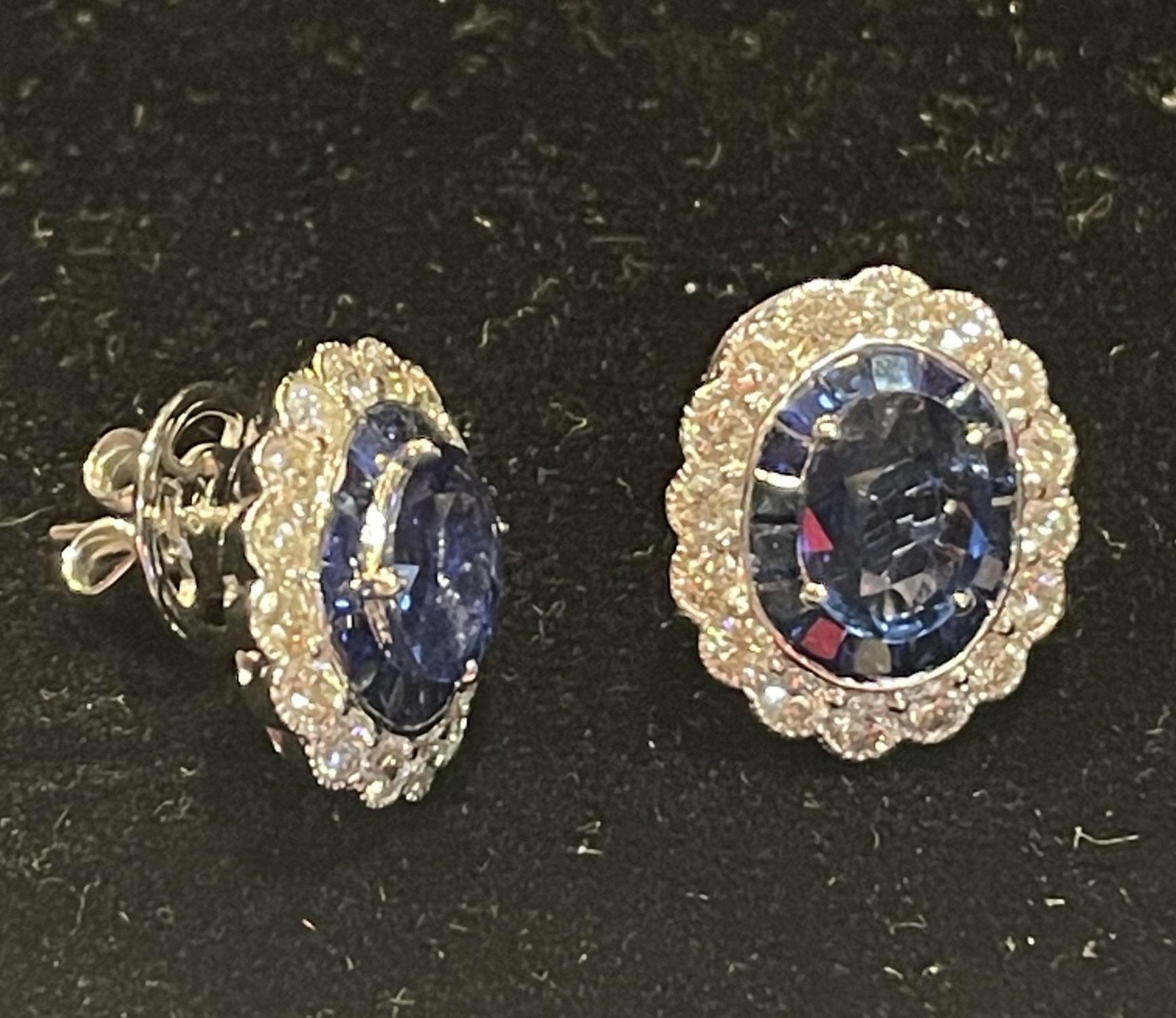 Lot 1415 PAIR OF NATURAL CEYLON SAPPHIRES EARRINGS SET IN 18 CT WHITE GOLD
