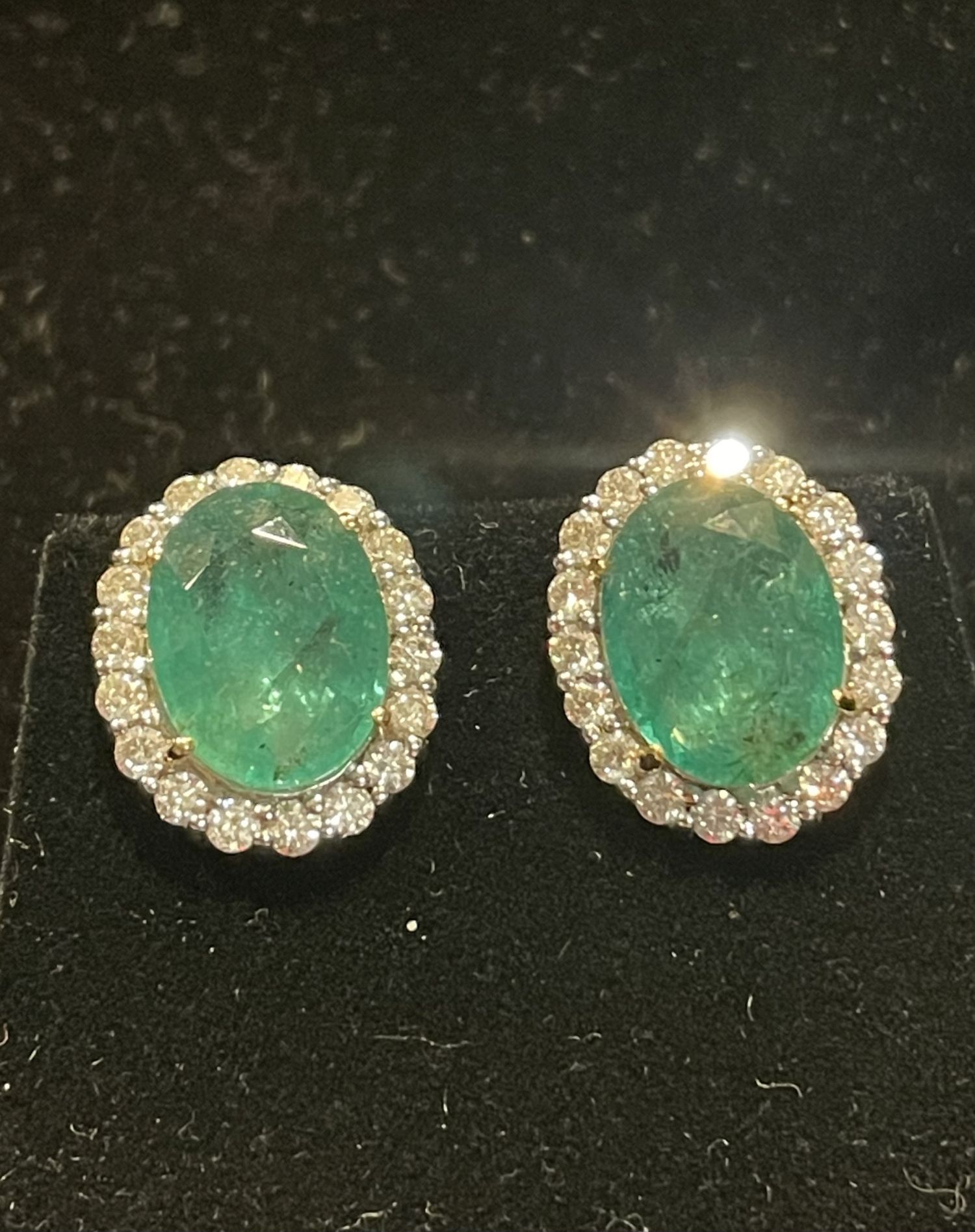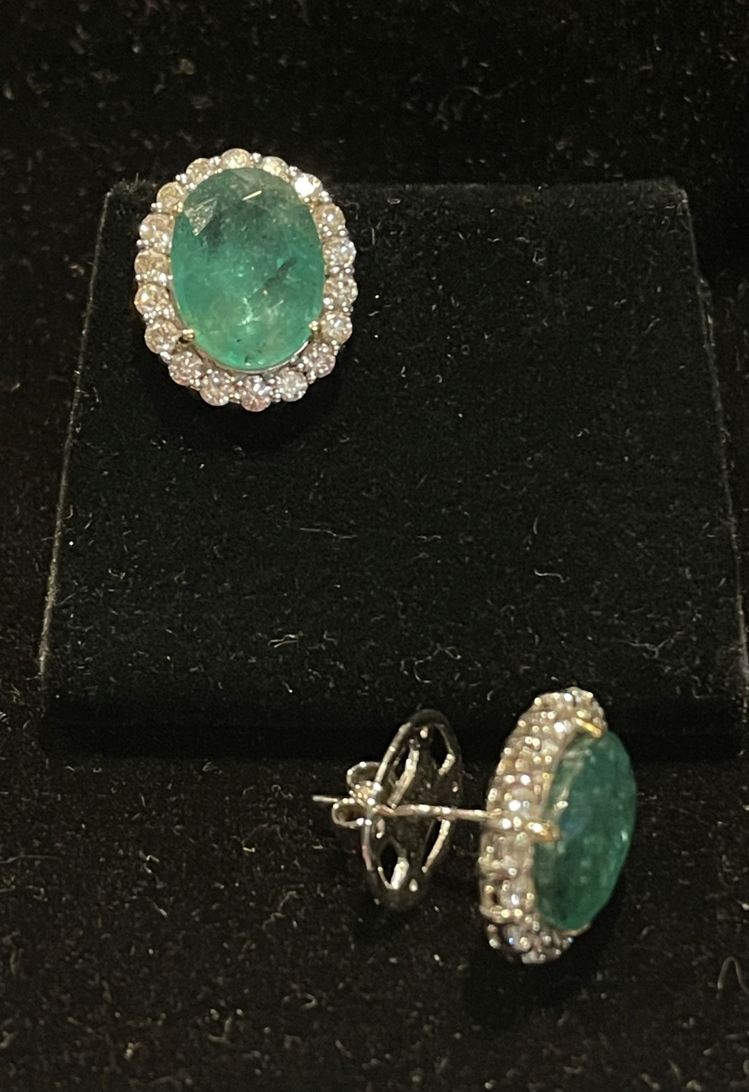 Lot 1355 PAIR OF NATURAL COLOMBIAN EMERALD EARRINGS SET IN 18 CT WHITE GOLD