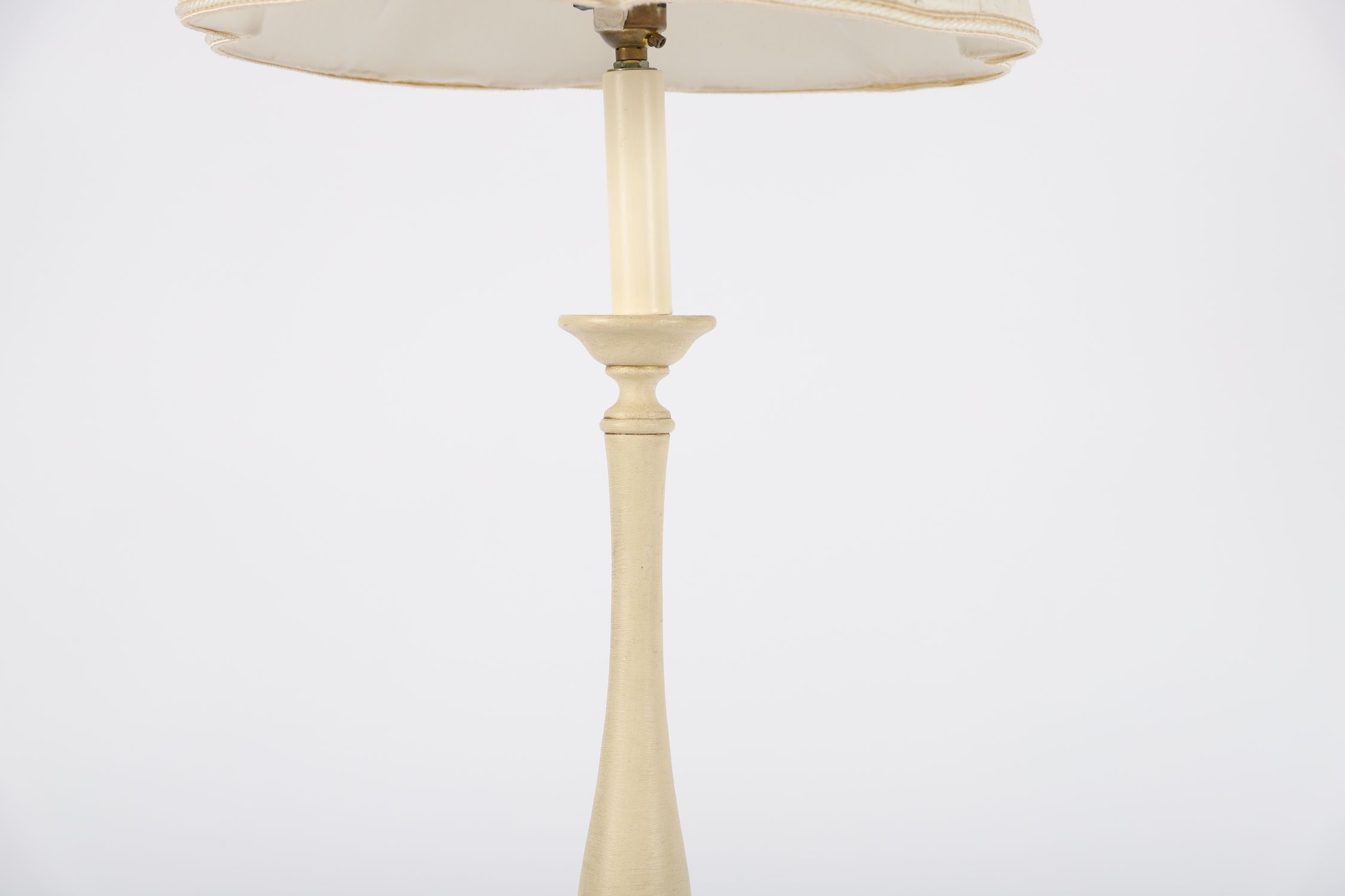 Lot 937 PAIR OF PAINTED TURNED WOOD TABLE LAMPS WITH SHADES