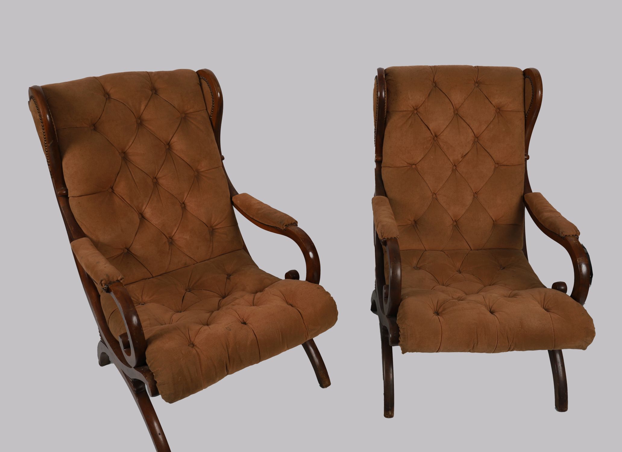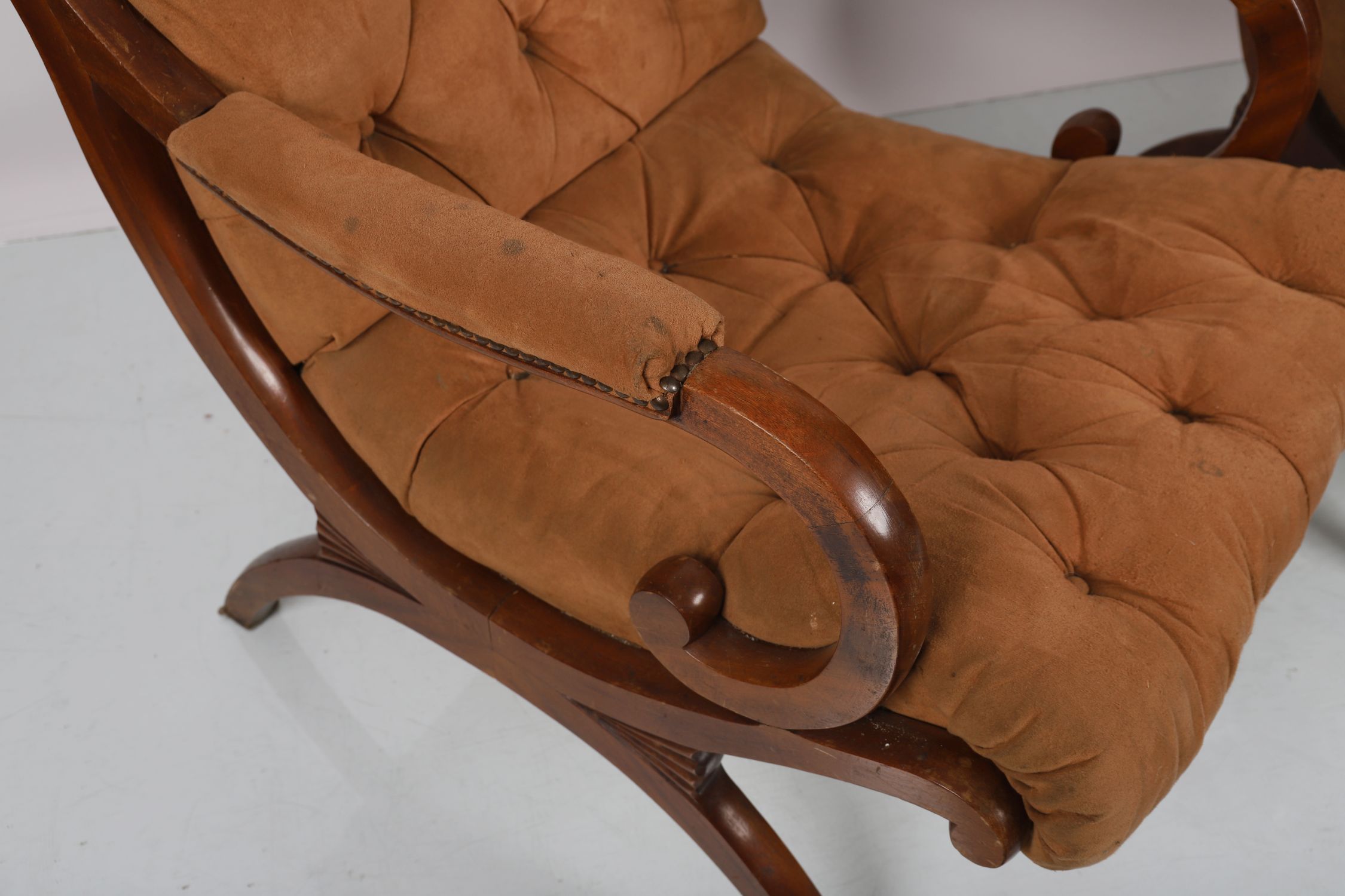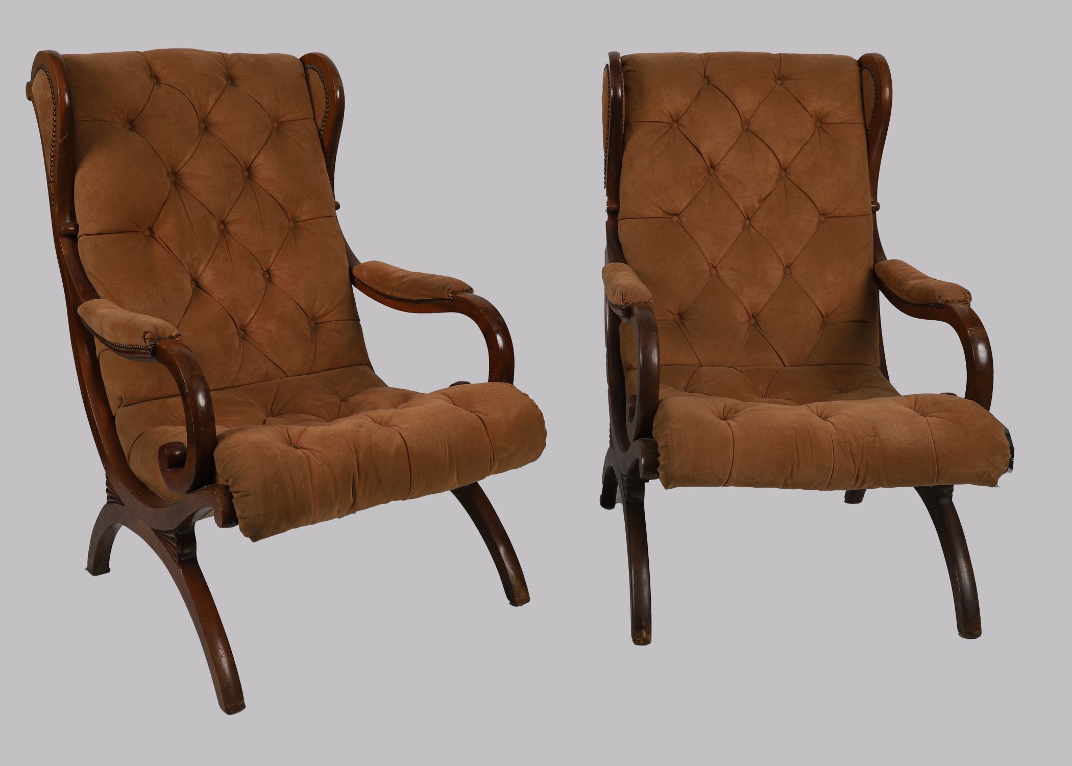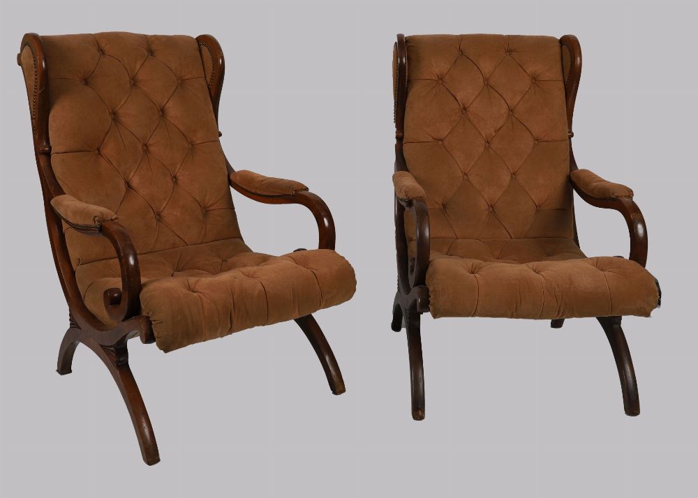 Lot 1121 PAIR OF REGENCY STYLE MAHOGANY WING-BACK ARMCHAIRS