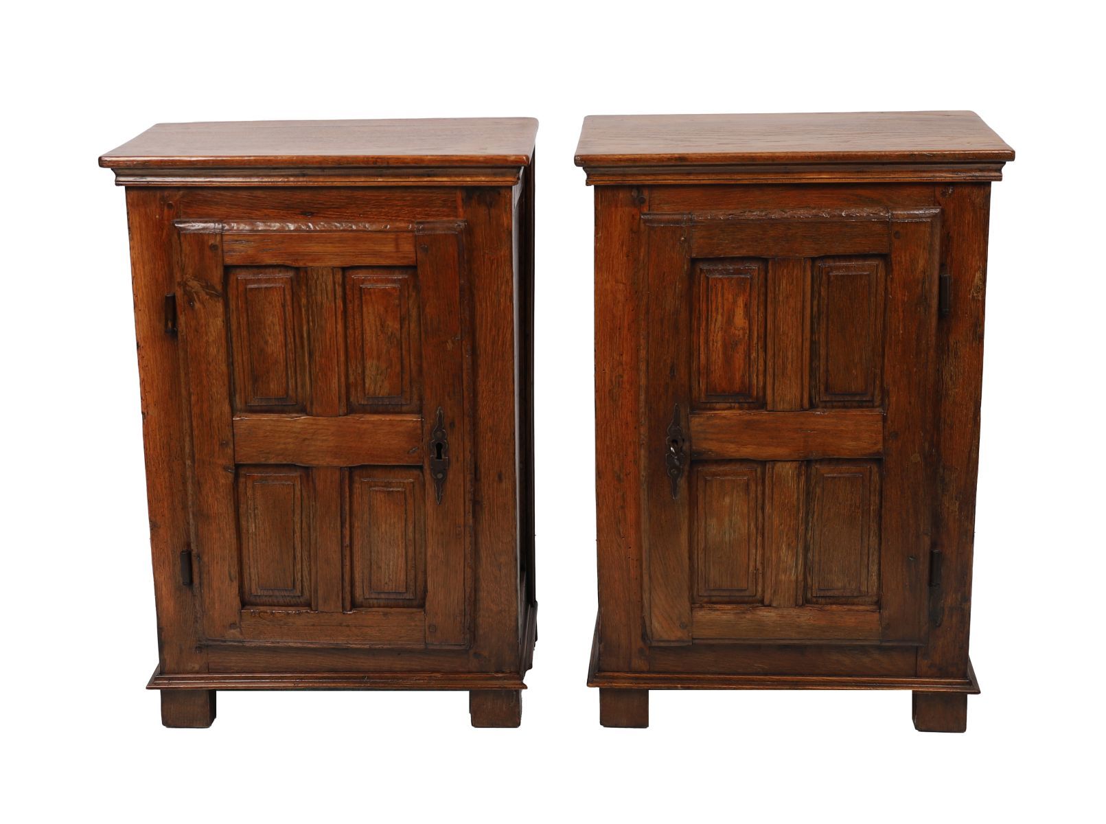 Lot 414 PAIR OF REMODELLED 18TH-CENTURY OAK BEDSIDE CABINETS