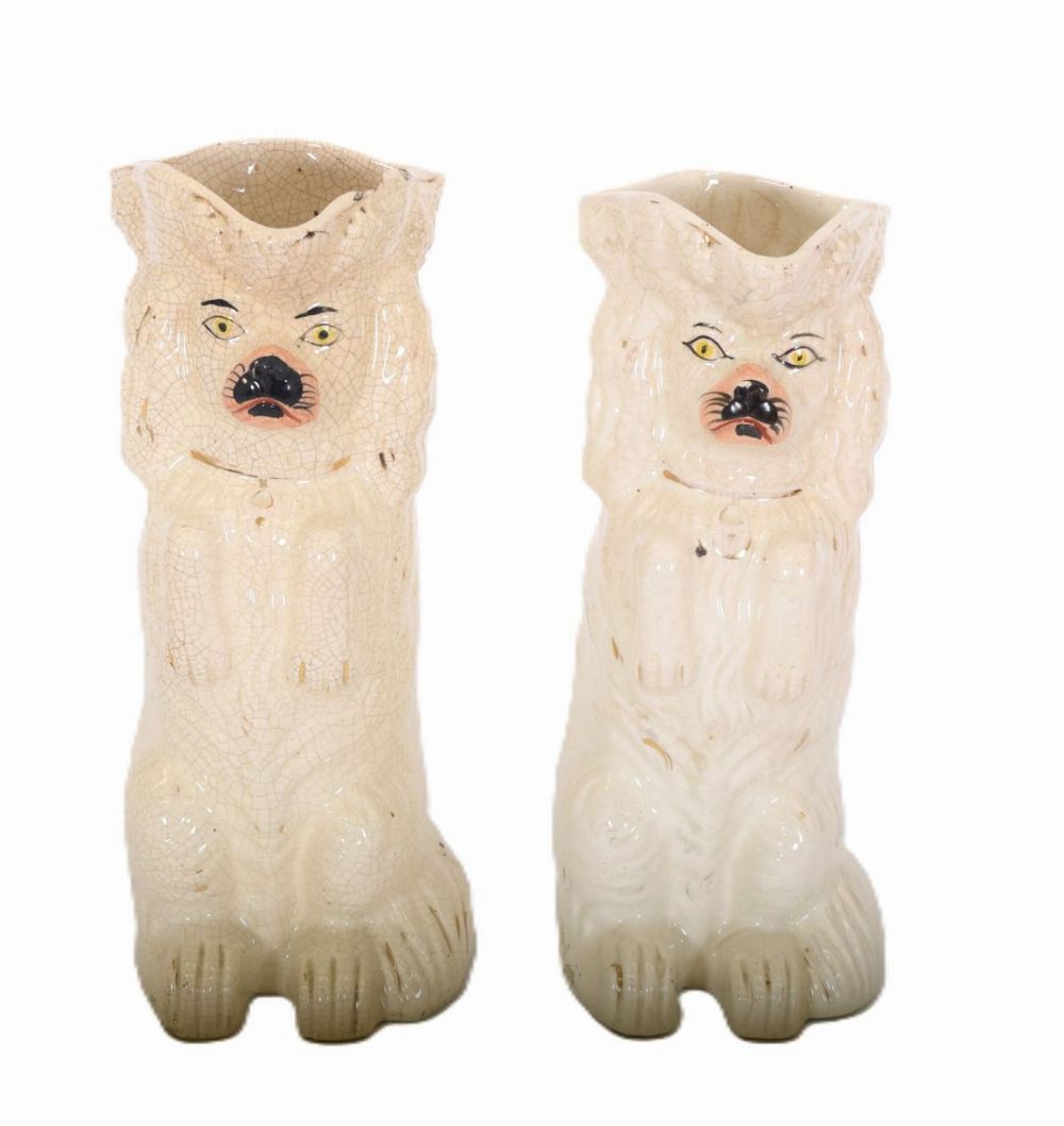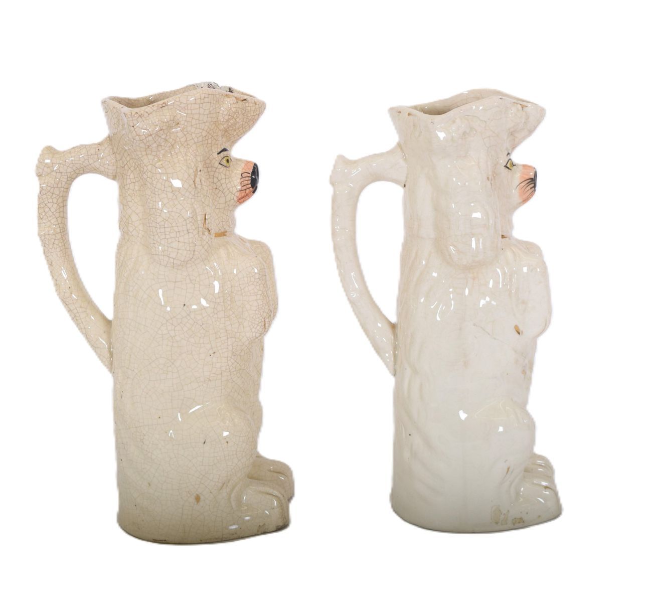 Lot 1501 PAIR OF STAFFORDSHIRE POTTERY SEATED DOG MILK JUGS
