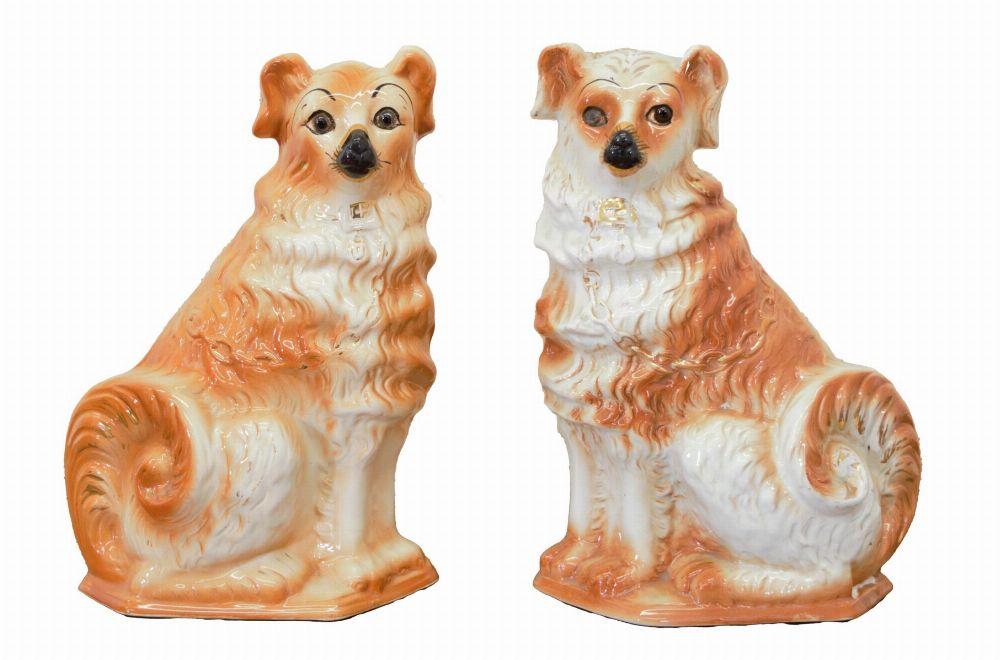 Lot 1741 PAIR OF STAFFORDSHIRE SEAT DOGS