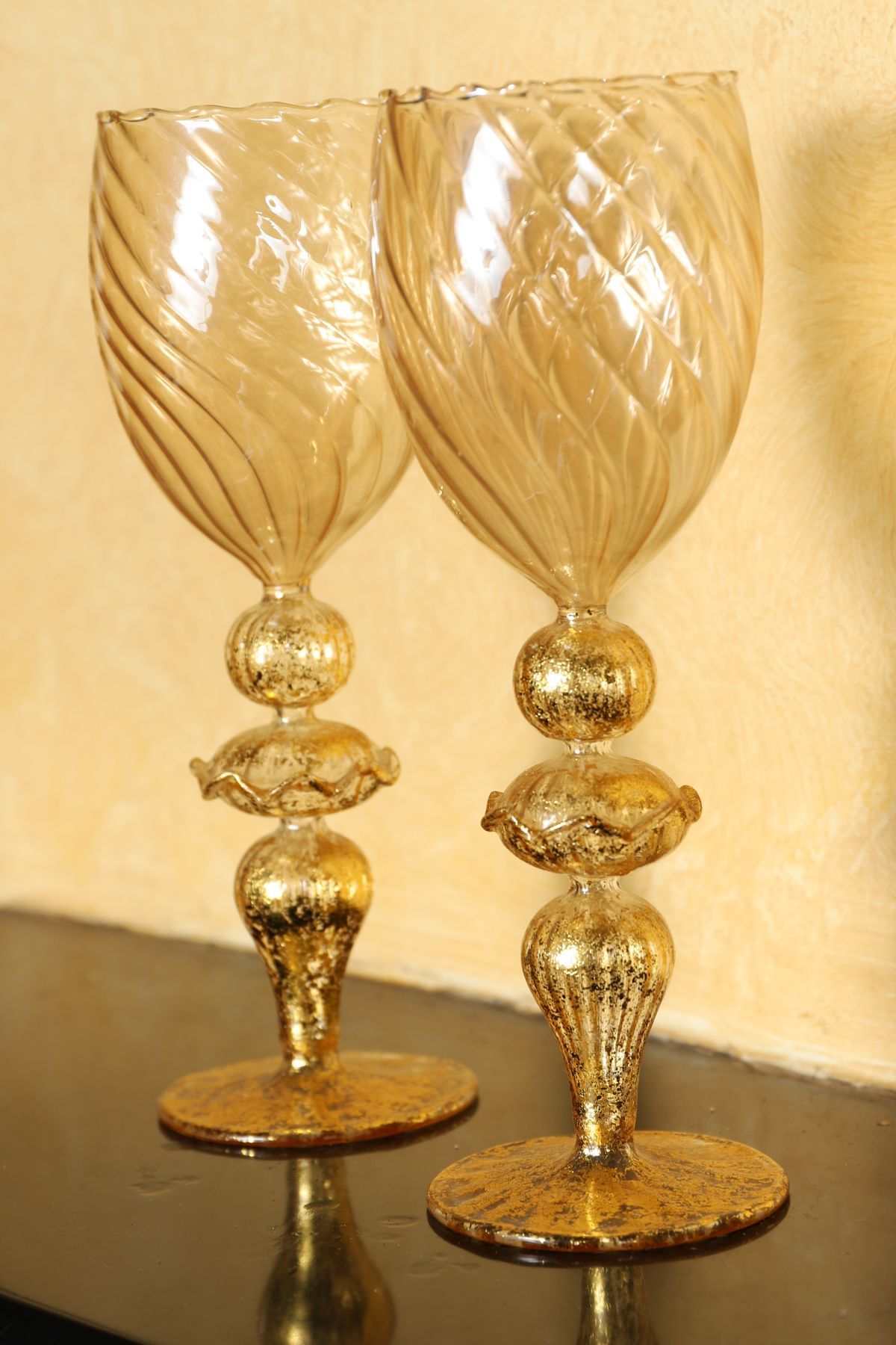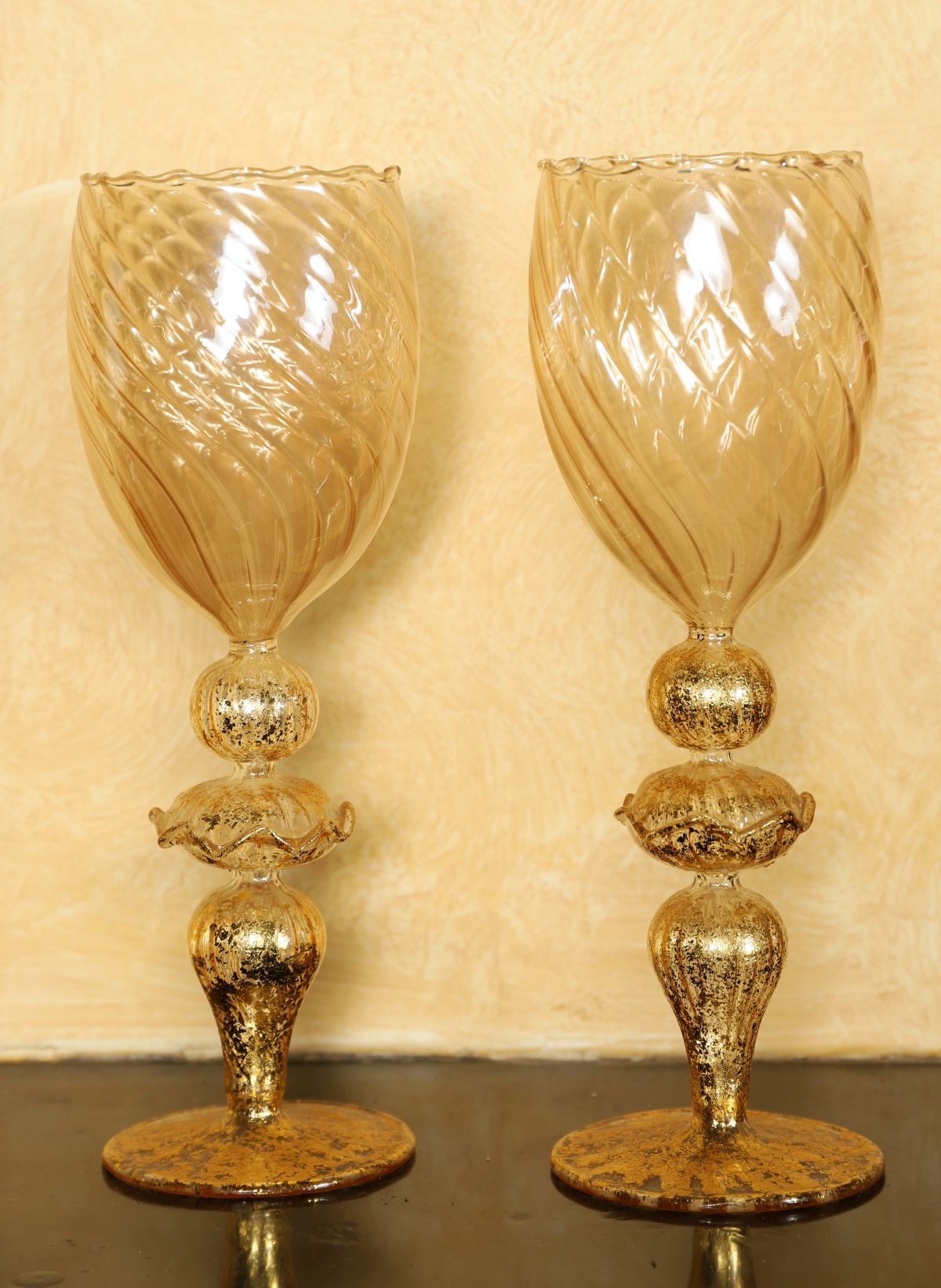 Lot 340 PAIR OF VENETIAN PARCEL-GILT STEMMED GLASSES