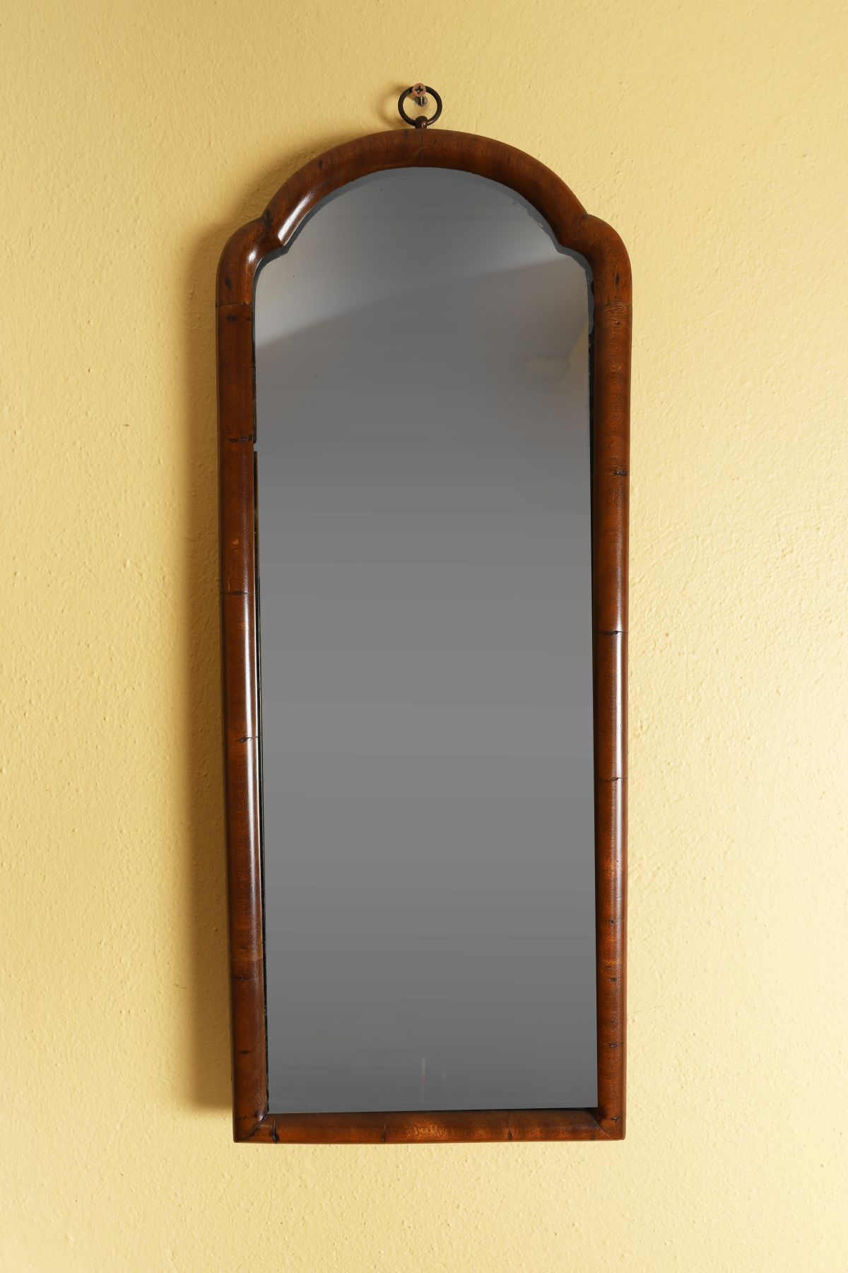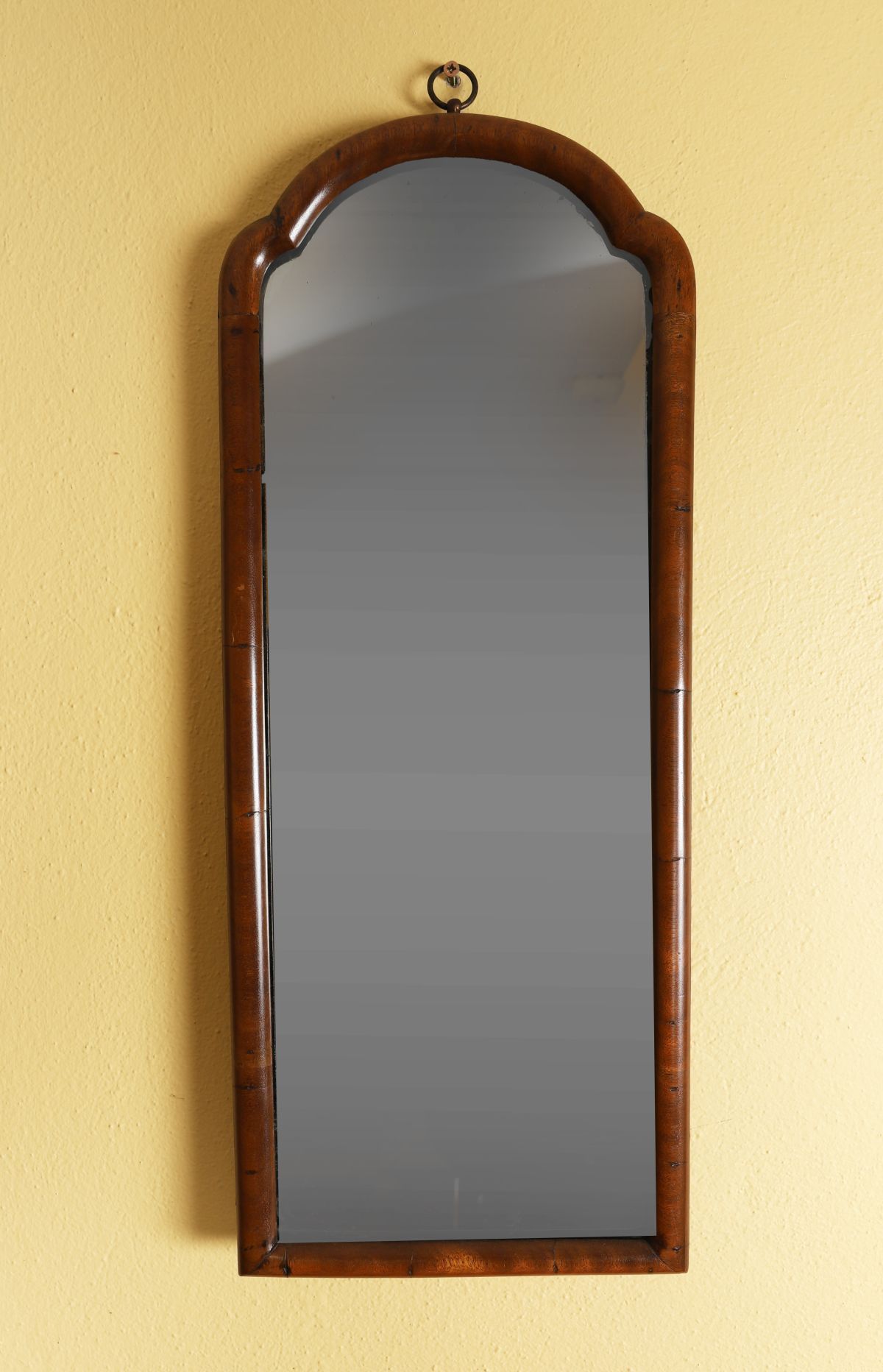 Each with arched plate enclosed within a parcel-gilt moulded wooden frame, retaining original foxed mirror plates.