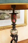 The turned stem decorated in polychrome finish, fitted for electricity.