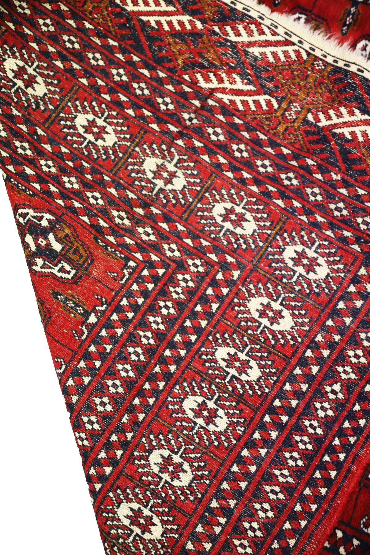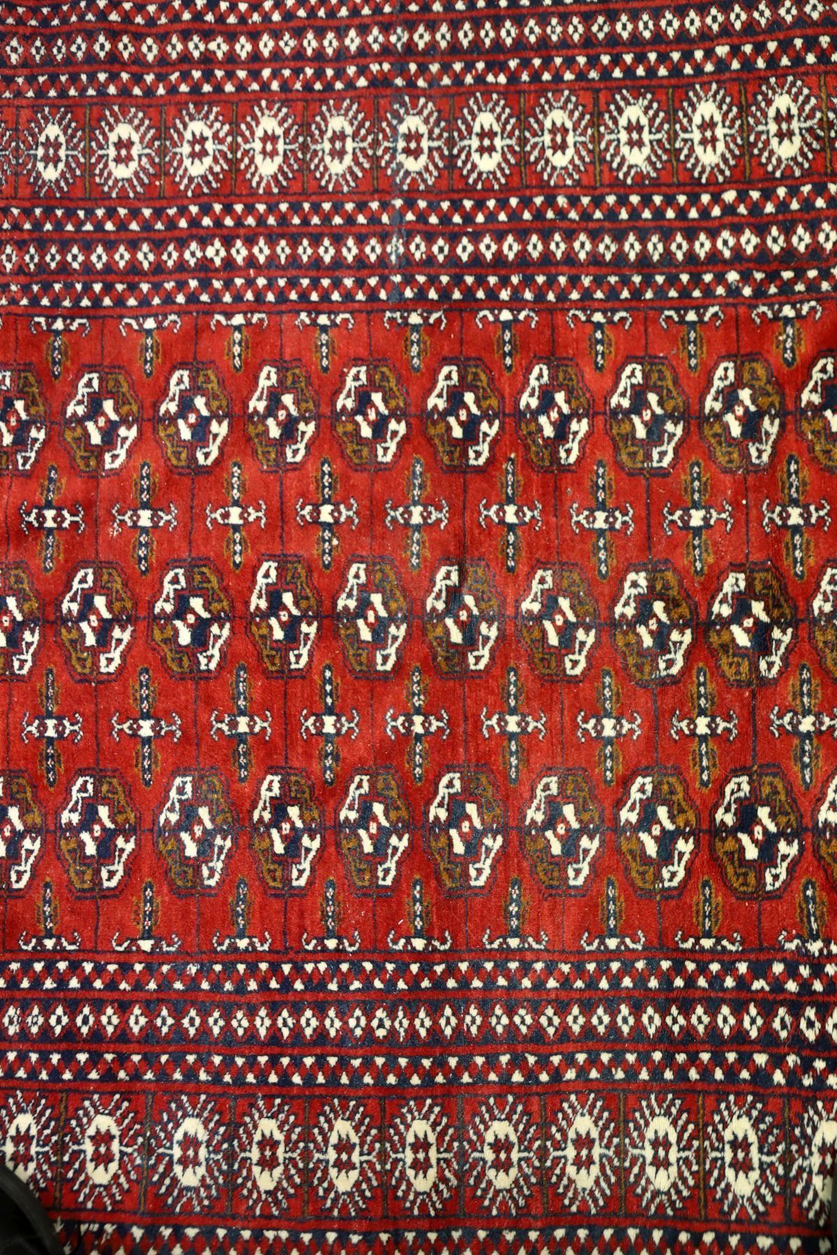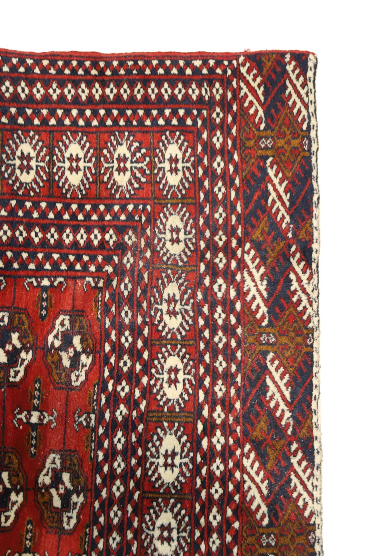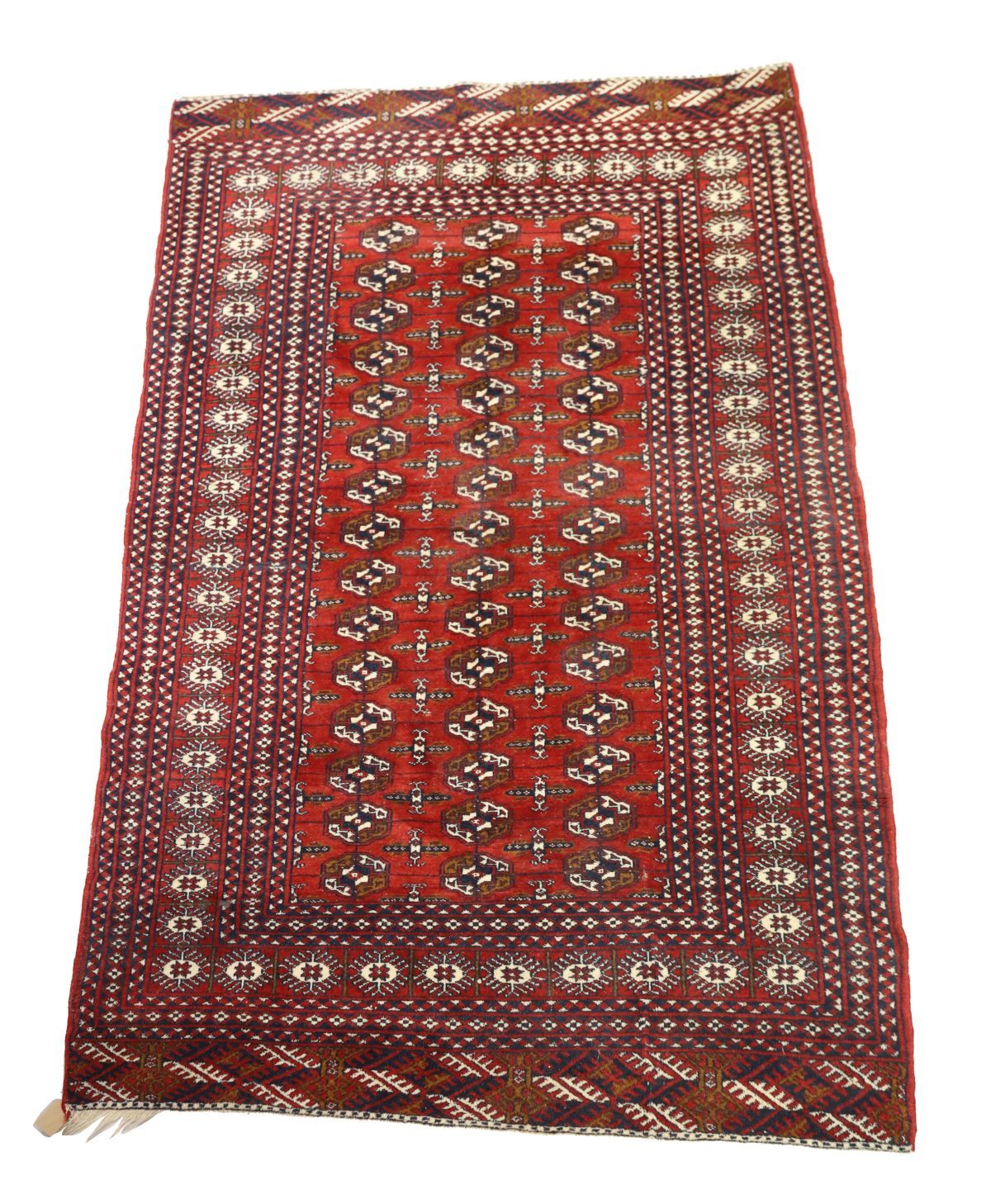 The central red ground with three rows of multiple guls enclosed by a series of outer borders.