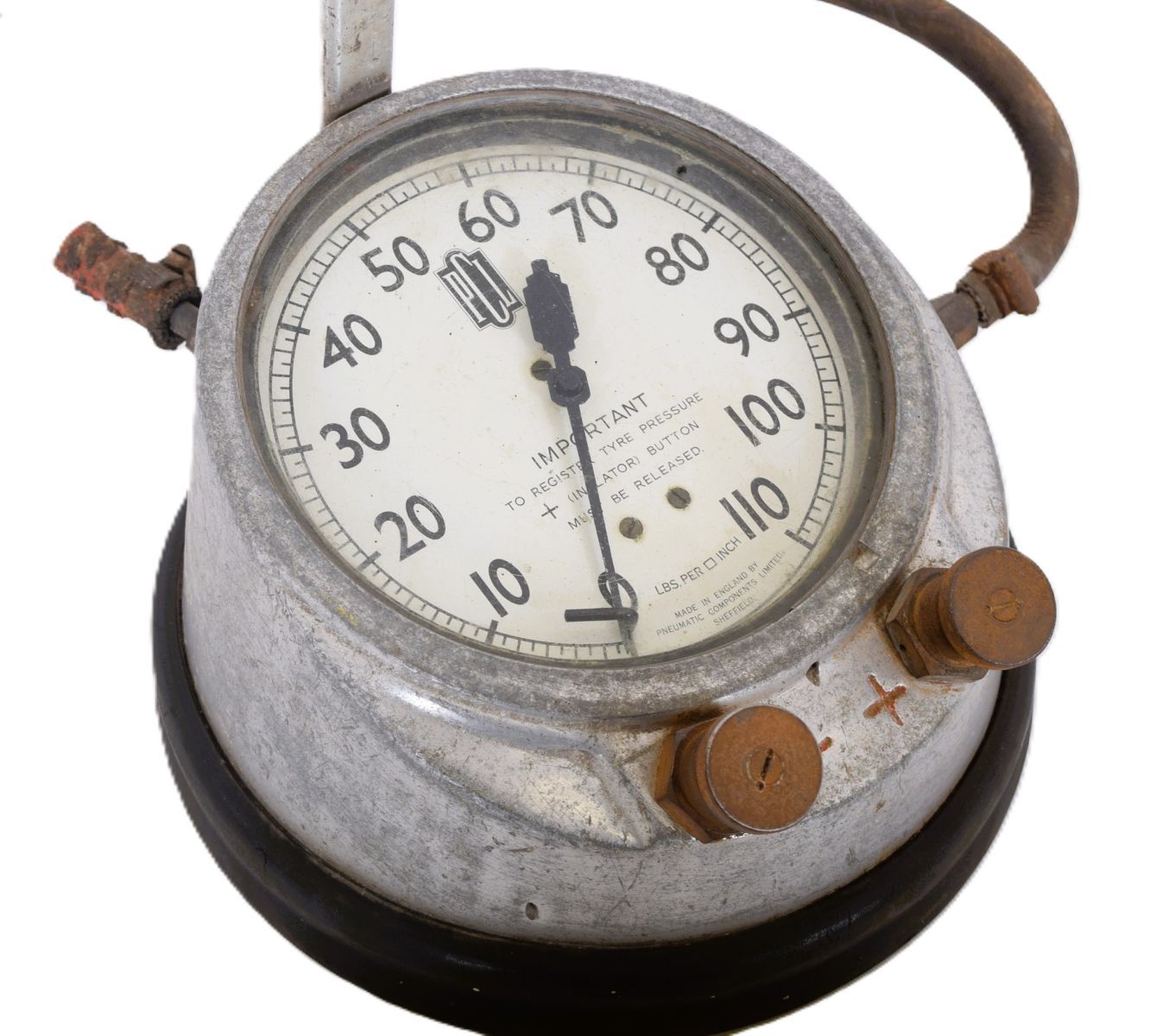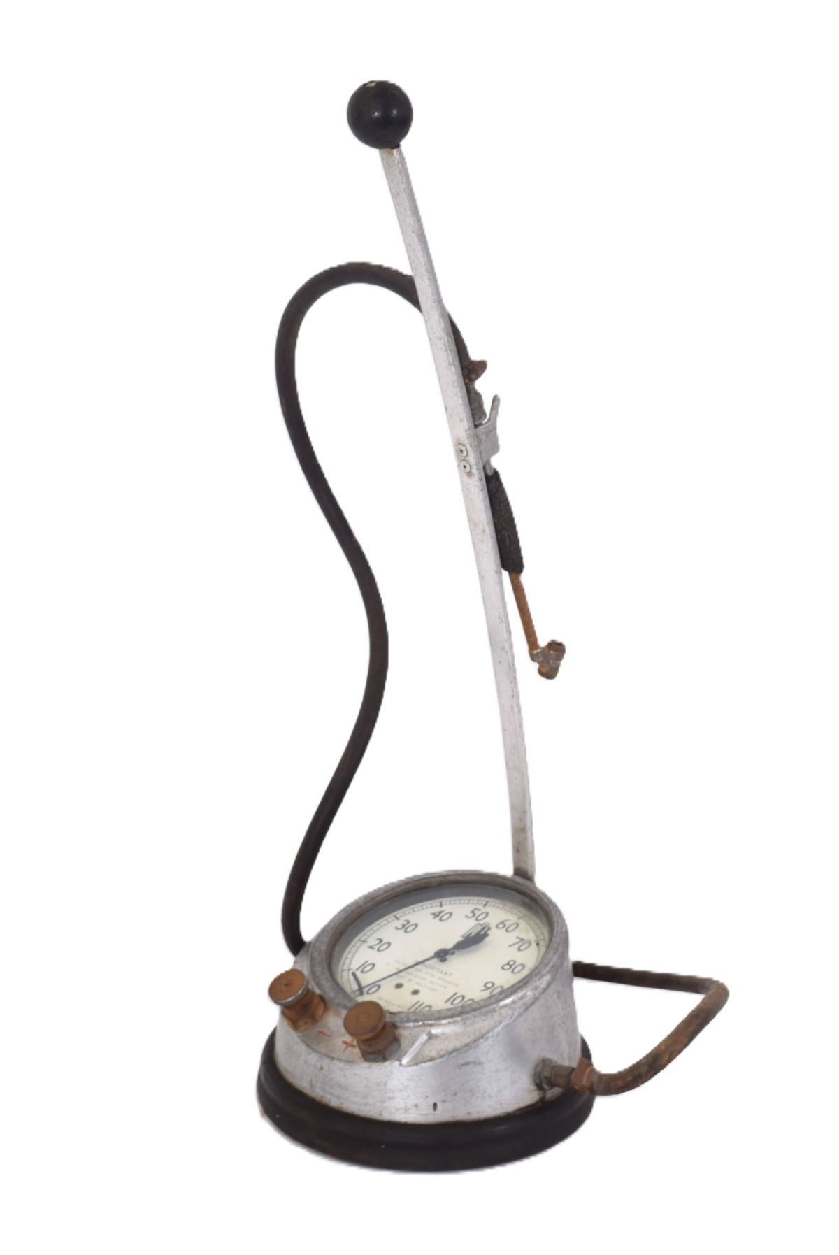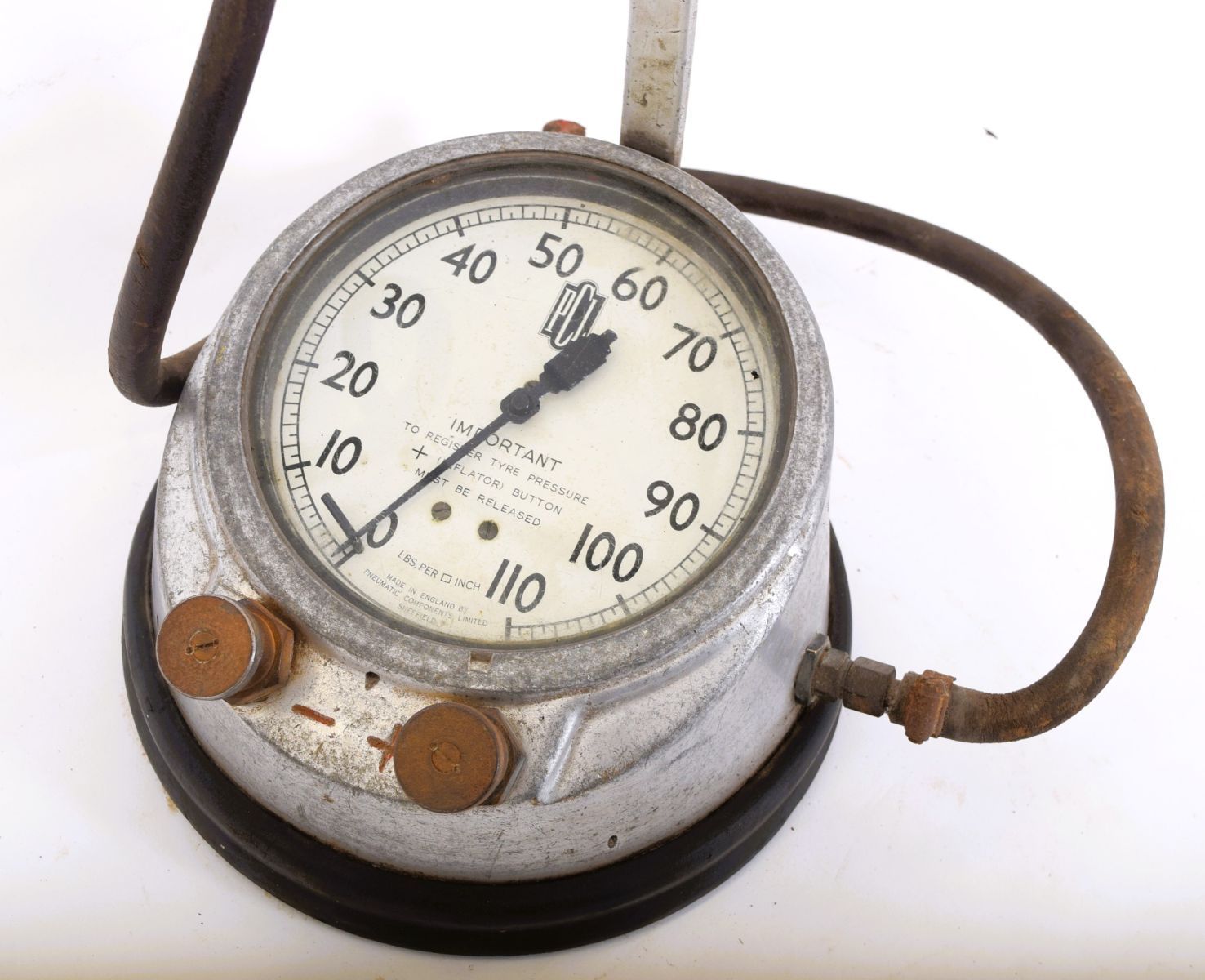 Chrome and rubber car forecourt tyre pressure air compressor by Pneumatic Components Limited.