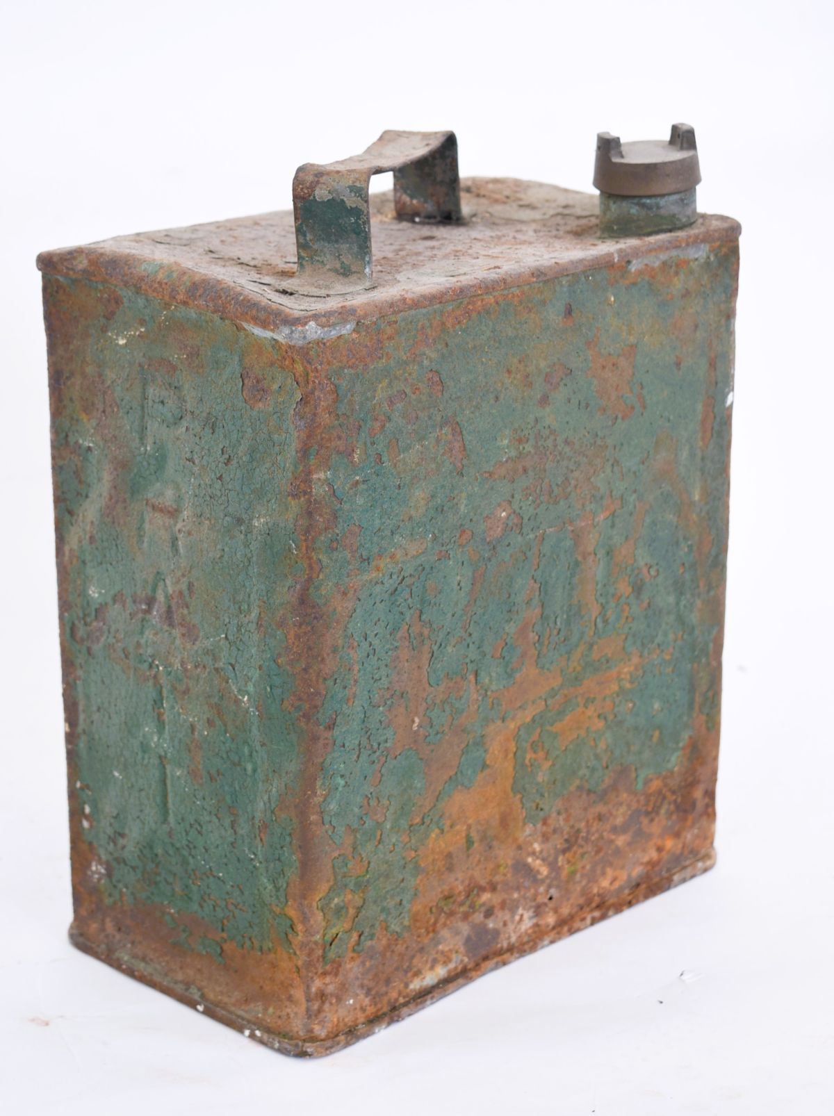 Original metal oil can for Pratt’s Petroleum Spirit, printed decoration.