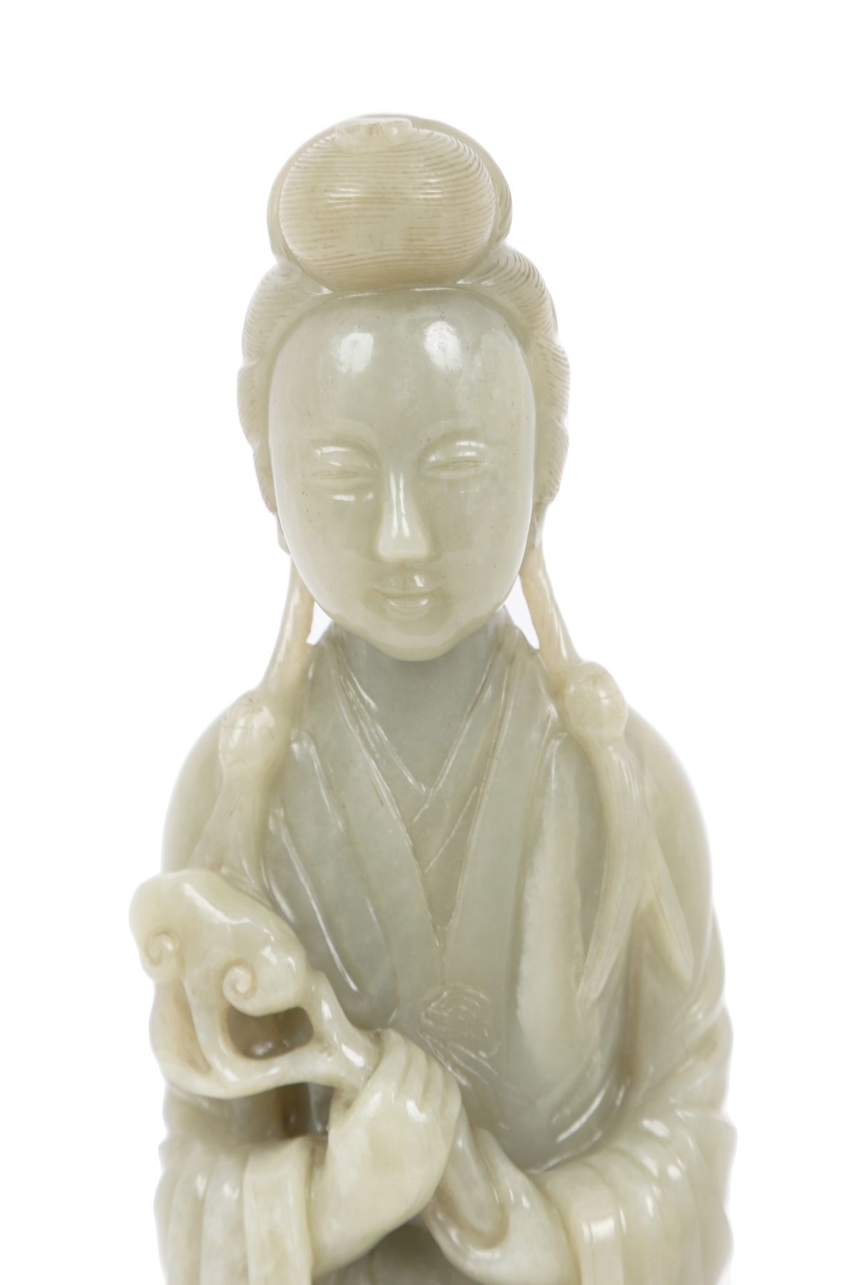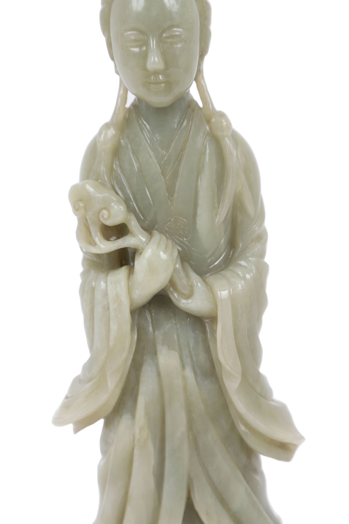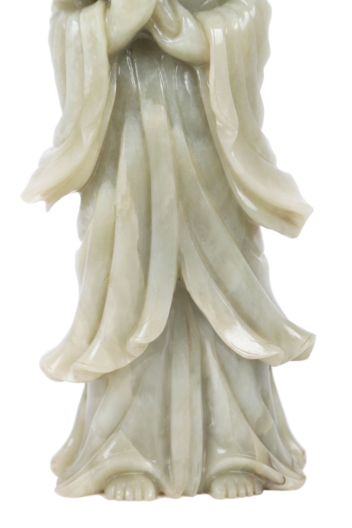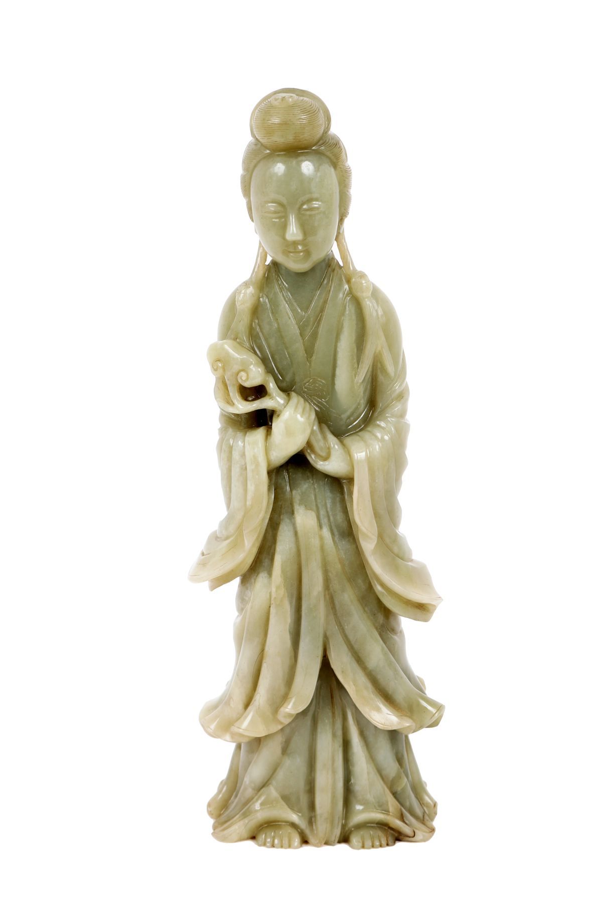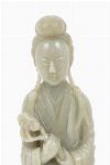 Lot 977 QING DYNASTY PALE GREEN JADE GUANYIN FIGURE