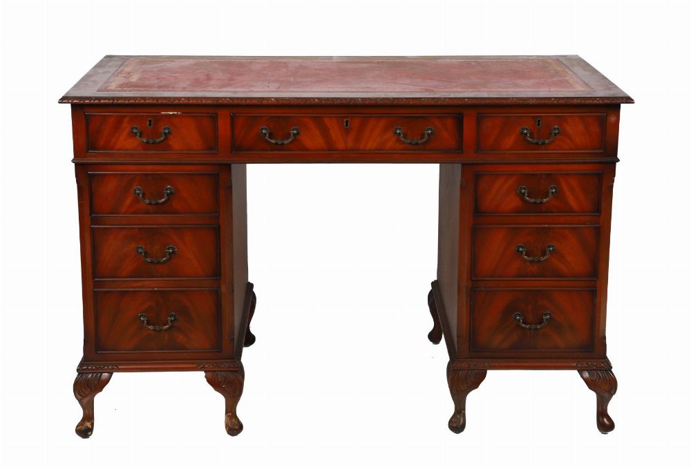 Lot 181 QUEEN ANNE STYLE MAHOGANY PEDESTAL WRITING DESK