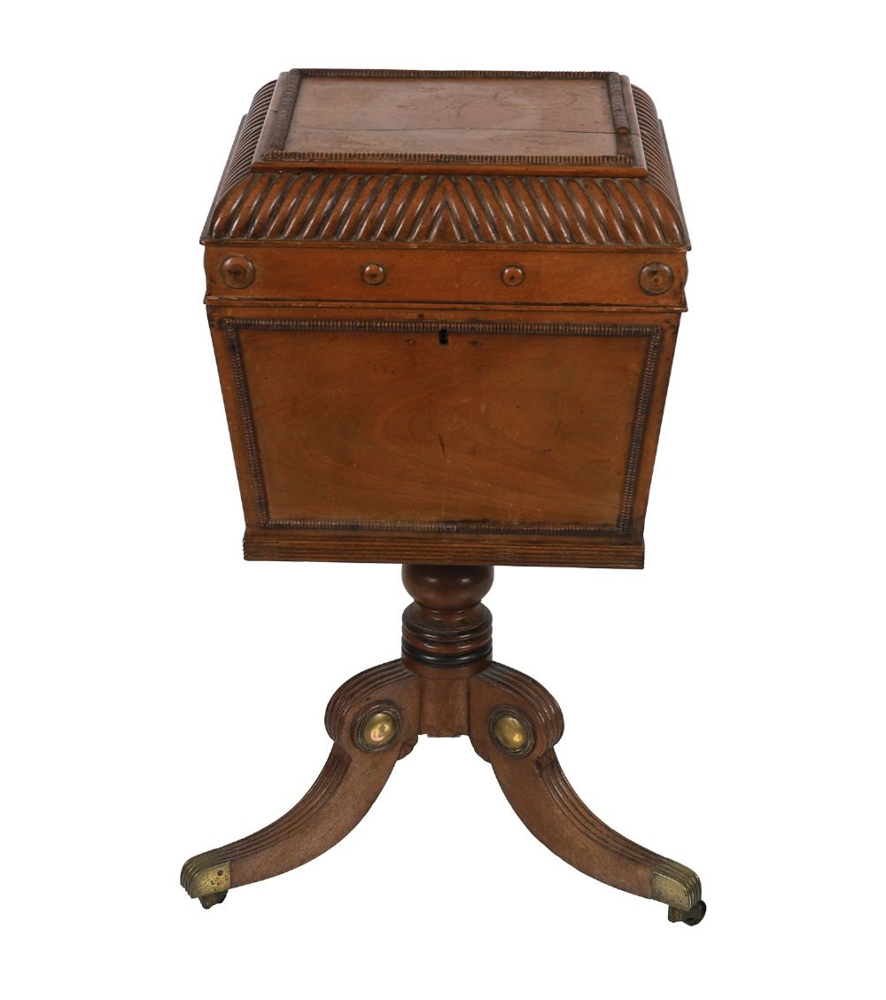 Lot 1535 RARE CORK REGENCY PERIOD MAHOGANY TEAPOY WITH GADROONED HINGED LID