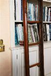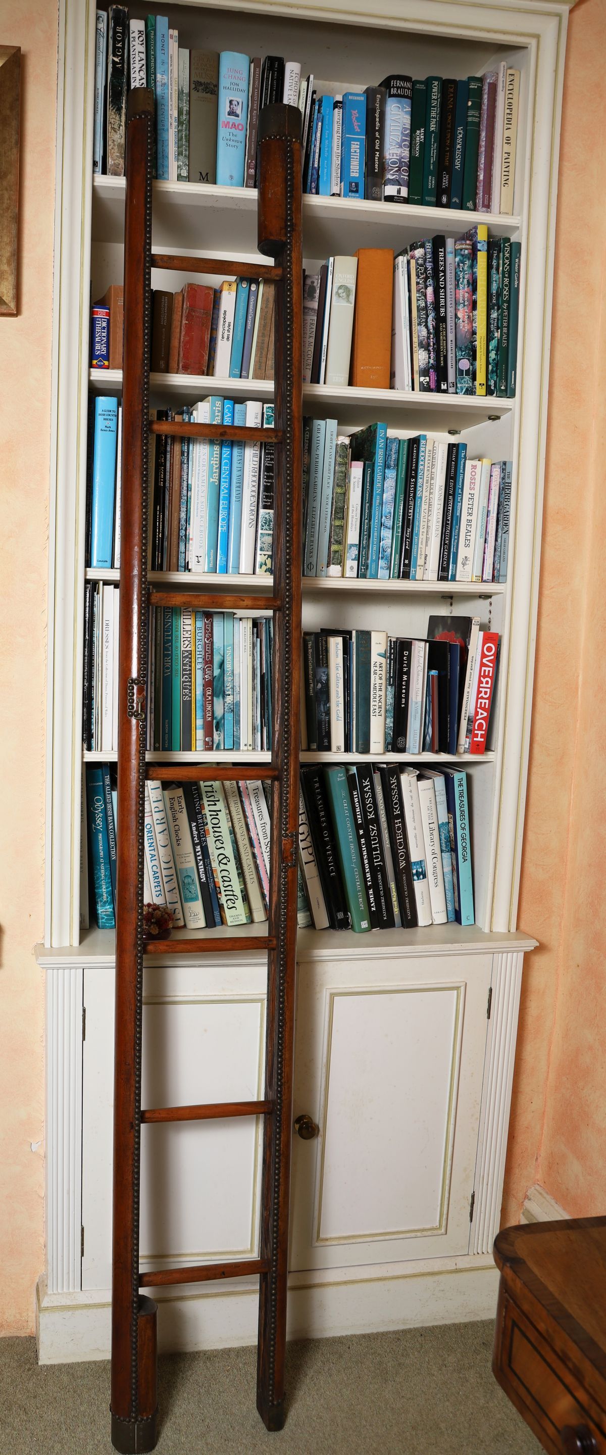 The adjustable pole with brass fittings, opening to a fully functioning library ladder.