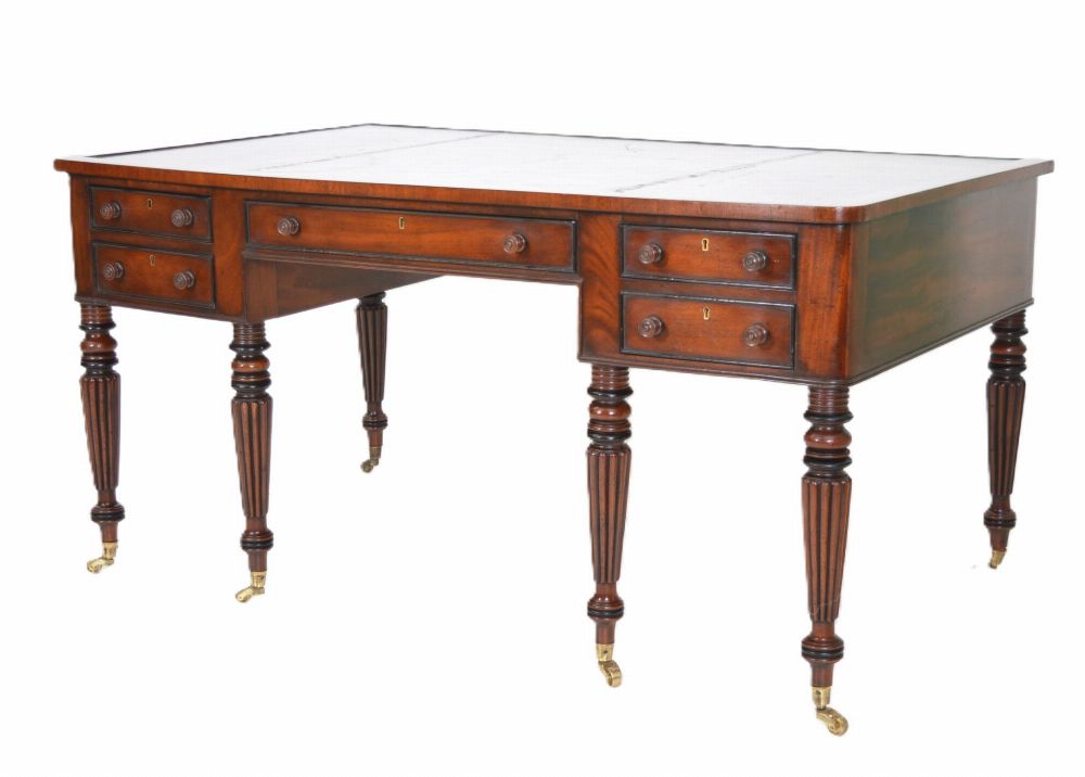 Lot 718 REGENCY MAHOGANY LEATHER-TOP KNEEHOLE WRITING DESK