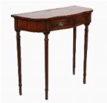 Early 19th century. A Regency mahogany serpentine side table, fitted with a single drawer and raised on square tapering legs.