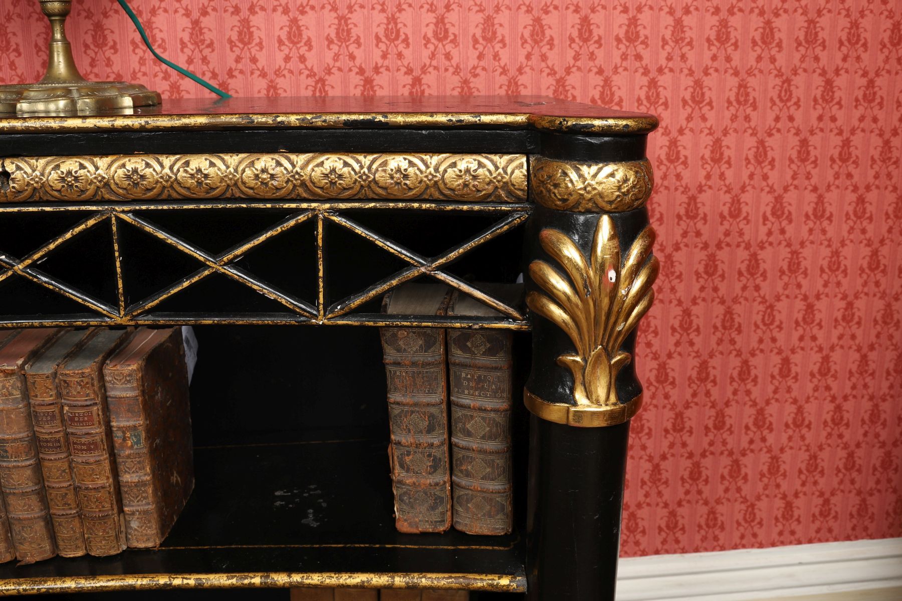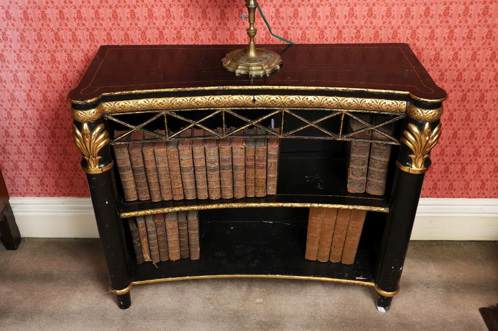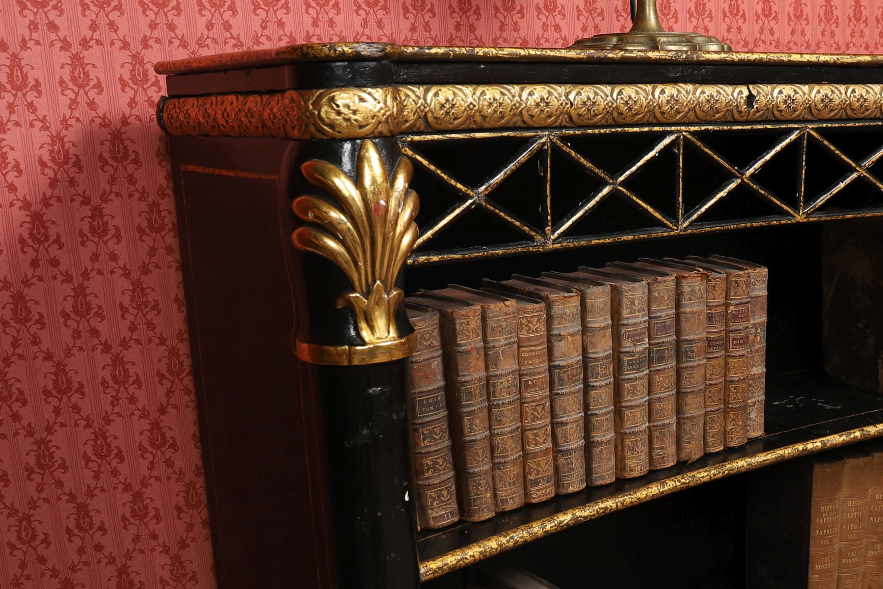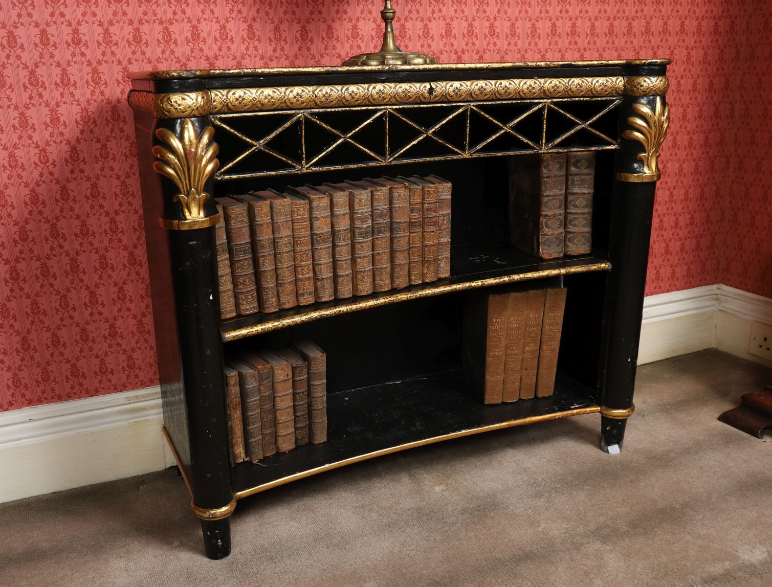 Lot 1034 REGENCY PERIOD EBONY AND PARCEL-GILT OPEN BOOKCASE