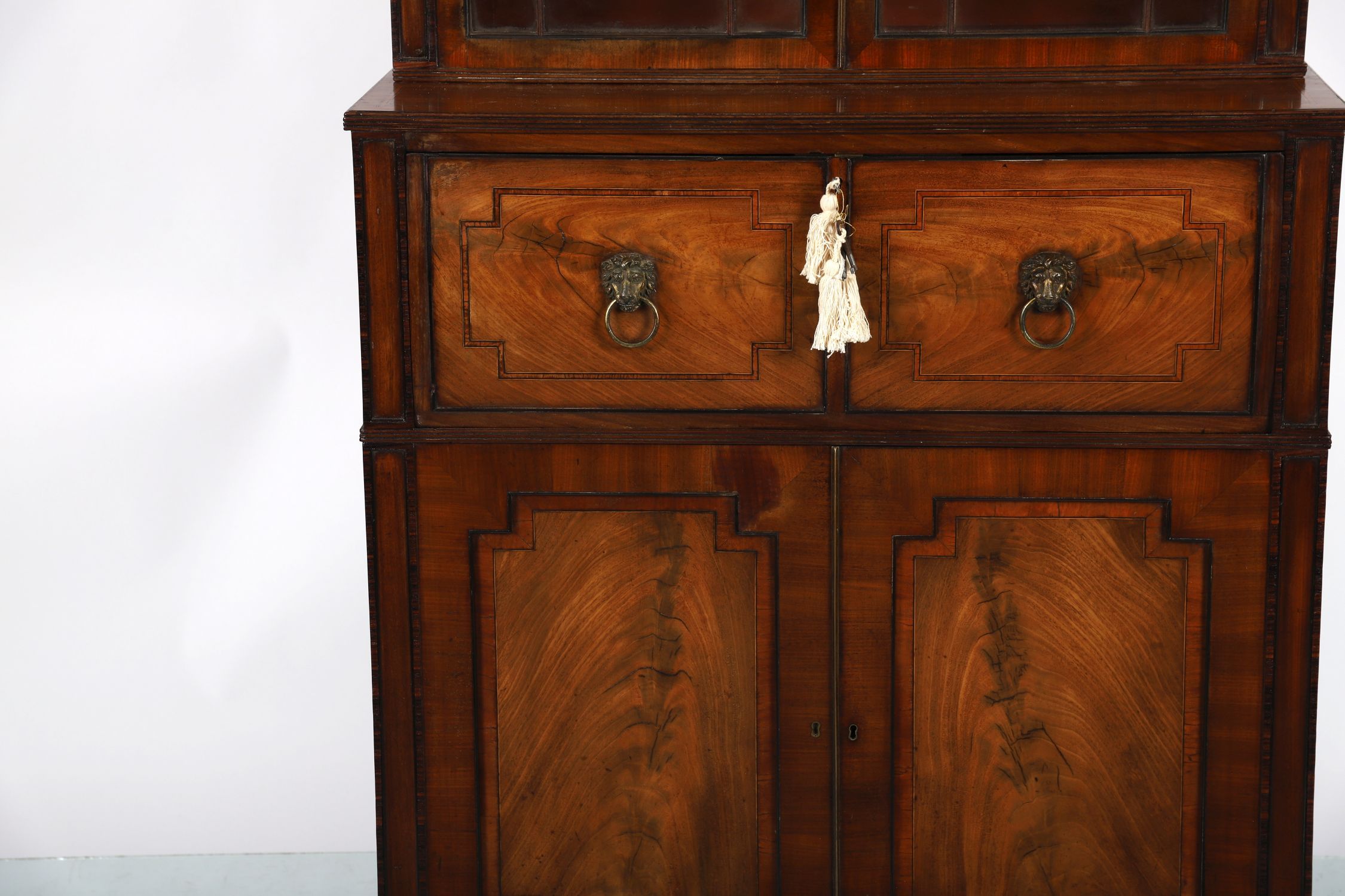 Lot 615 REGENCY PERIOD MAHOGANY AND BOXWOOD INLAID SECRETAIRE BOOKCASE