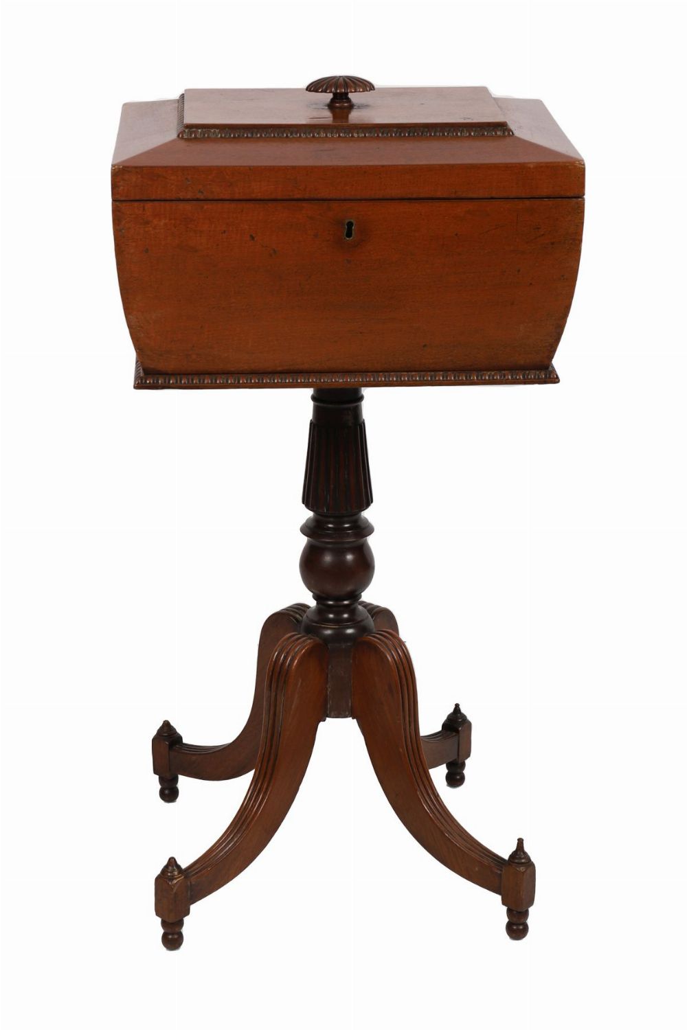 Lot 1372 REGENCY PERIOD MAHOGANY TEAPOY OF SARCOPHAGUS FORM