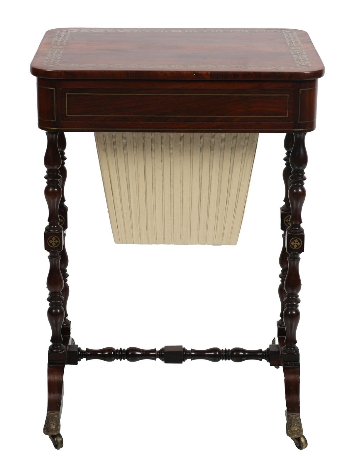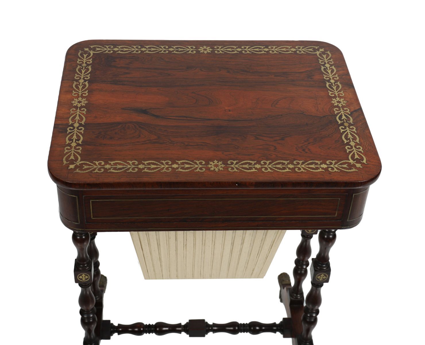 Lot 1438 REGENCY PERIOD ROSEWOOD AND BRASS-INLAID WORKTABLE
