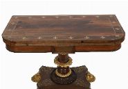 Lot 115 REGENCY ROSEWOOD AND BRASS-INLAID FOLD-OVER GAMES TABLE