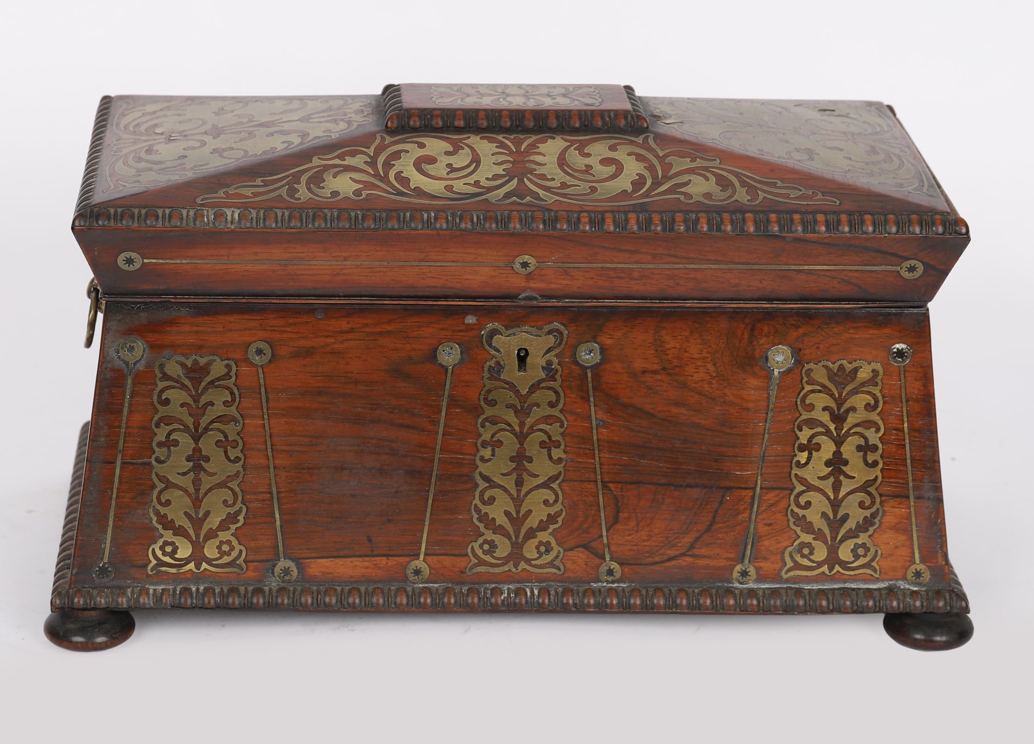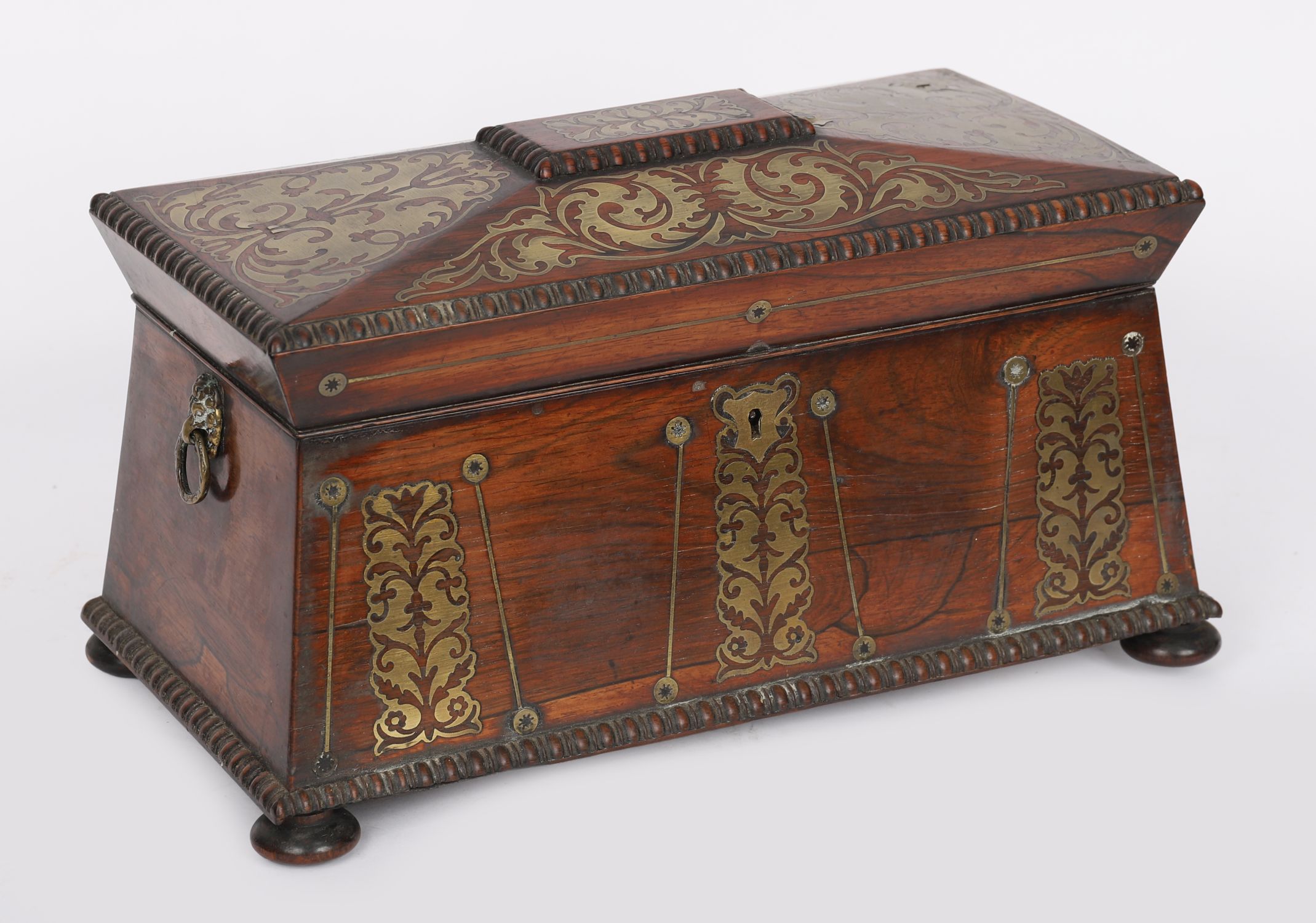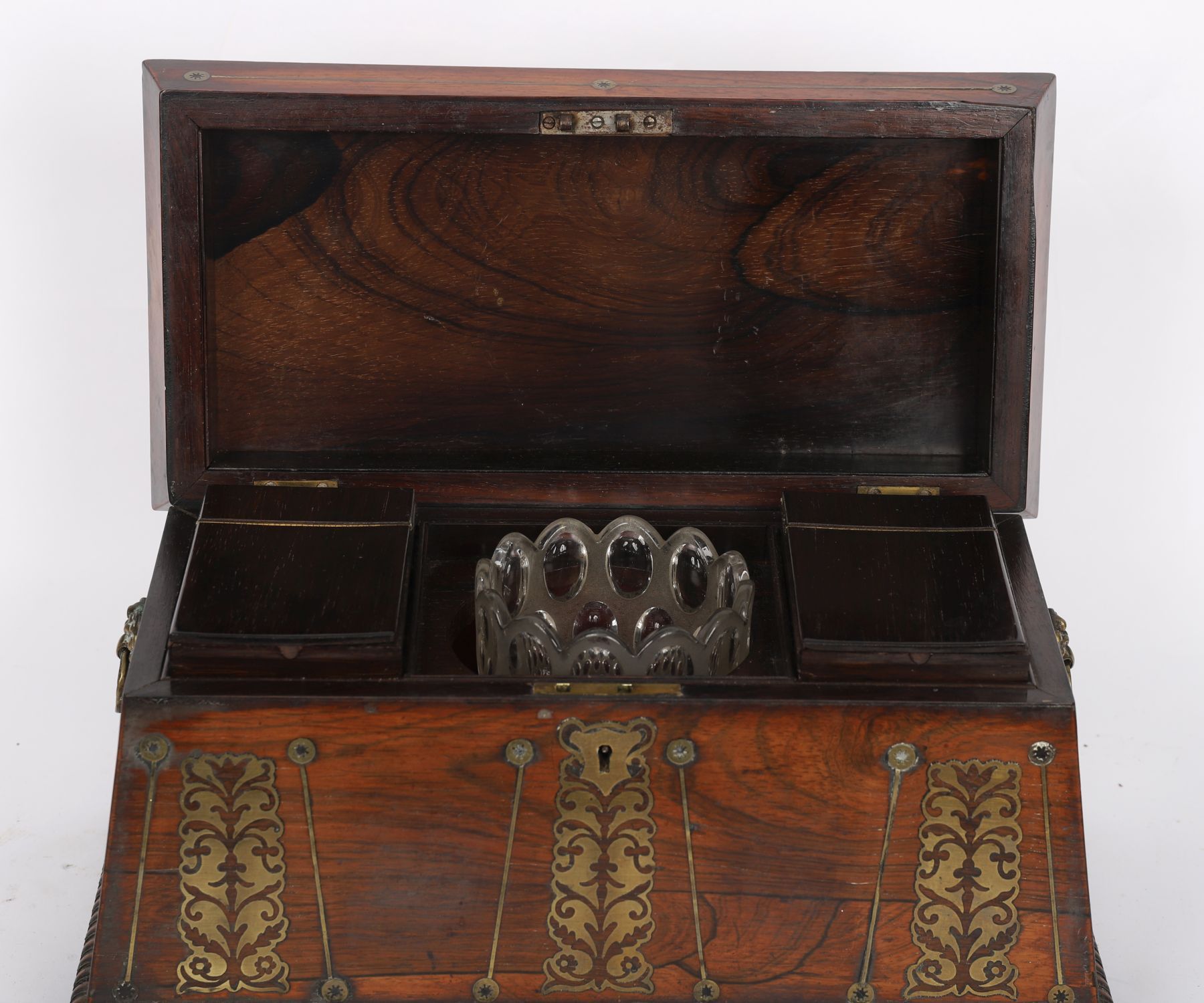 Lot 925 REGENCY ROSEWOOD AND BRASS INLAID TEA CADDY