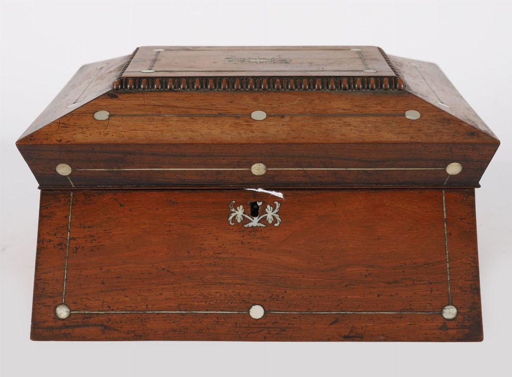Lot 329 REGENCY ROSEWOOD AND MOTHER -OF-PEARL INLAID BOX