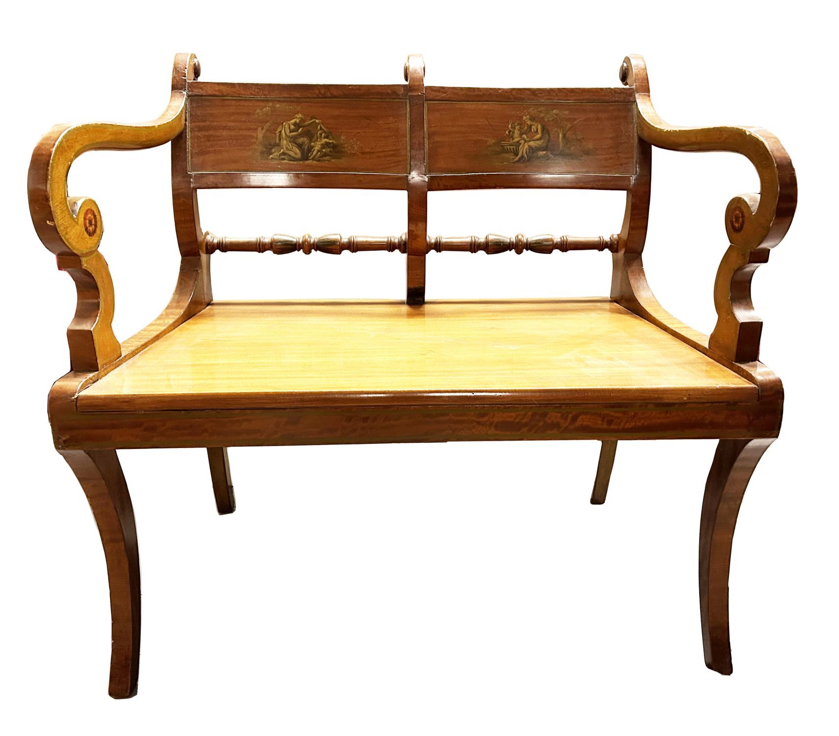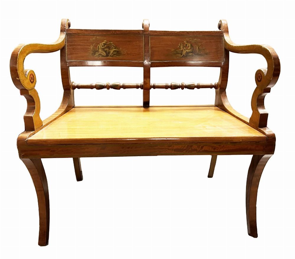 Lot 685 REGENCY SATINWOOD AND PAINTED HALL SEAT
