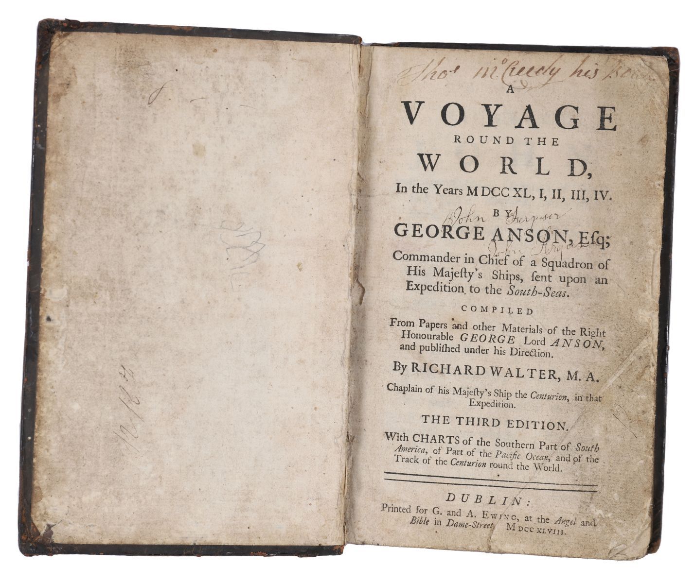 Lot 1031 RICHARD WALTER — A VOYAGE ROUND THE WORLD… BY GEORGE ANSON — DUBLIN, 1758 — THIRD EDITION