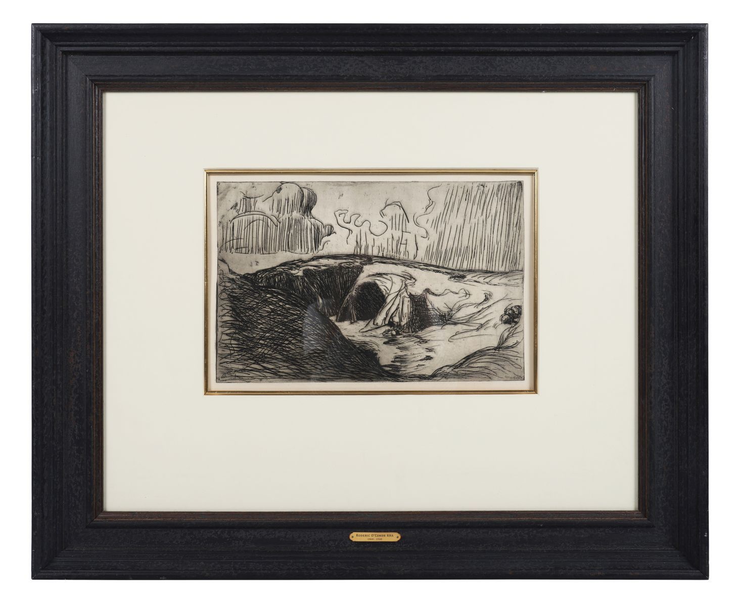 A bold linear study of a rugged coastal landscape, rendered with O’Conor’s distinctive rhythmic line and tonal contrast. The work reflects his modernist approach to form and texture, fusing expressive draughtsmanship with an instinct for structural composition. An evocative example of O’Conor’s graphic work, revealing his dialogue between Impressionism and Post-Impressionism.
