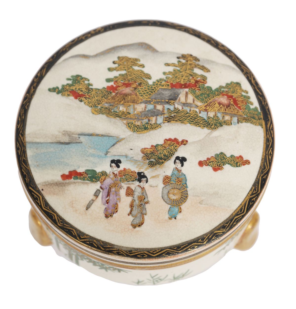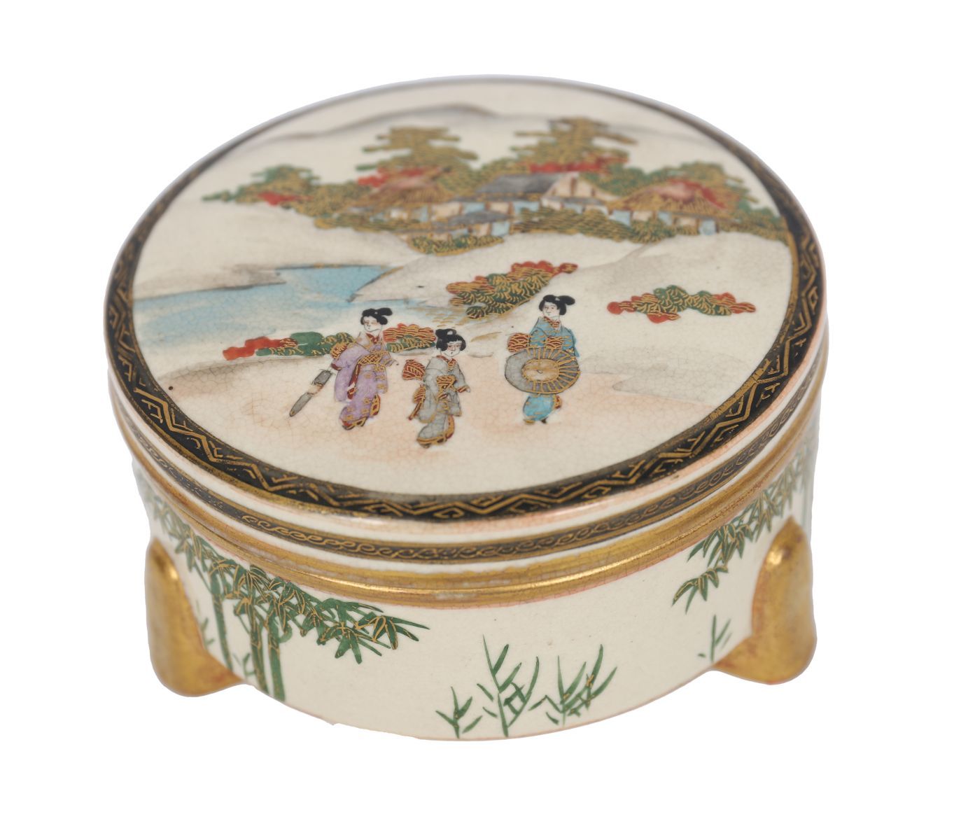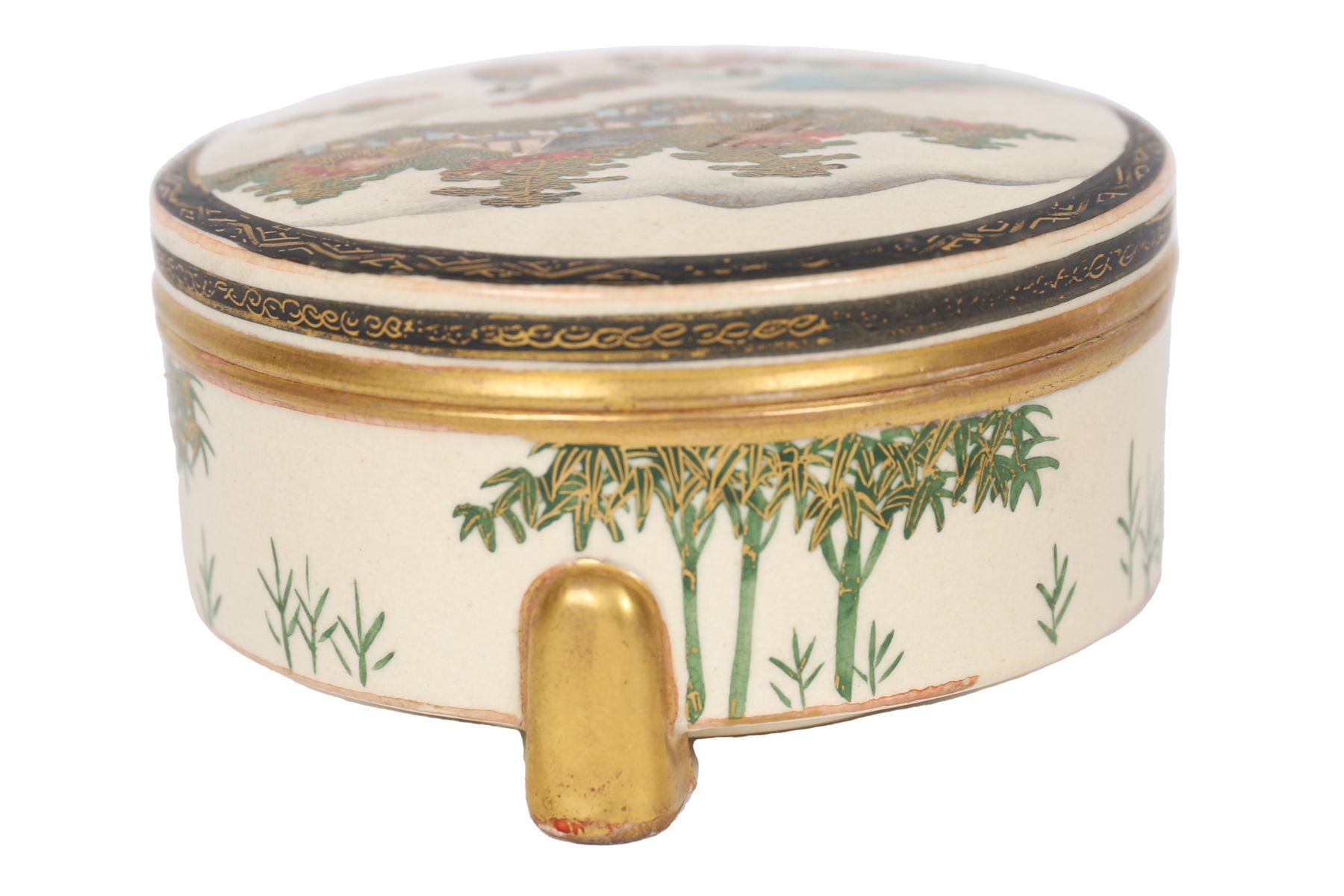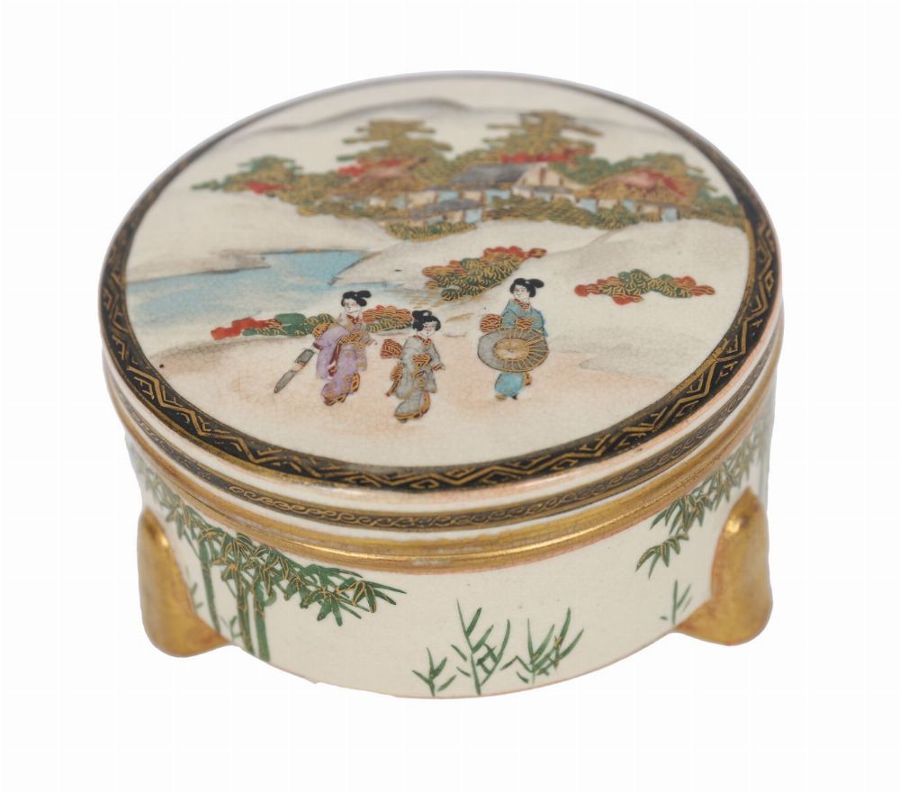 Lot 1374 SATSUMA CIRCULAR PORCELAIN FOOTED TRINKET BOX, MEIJI