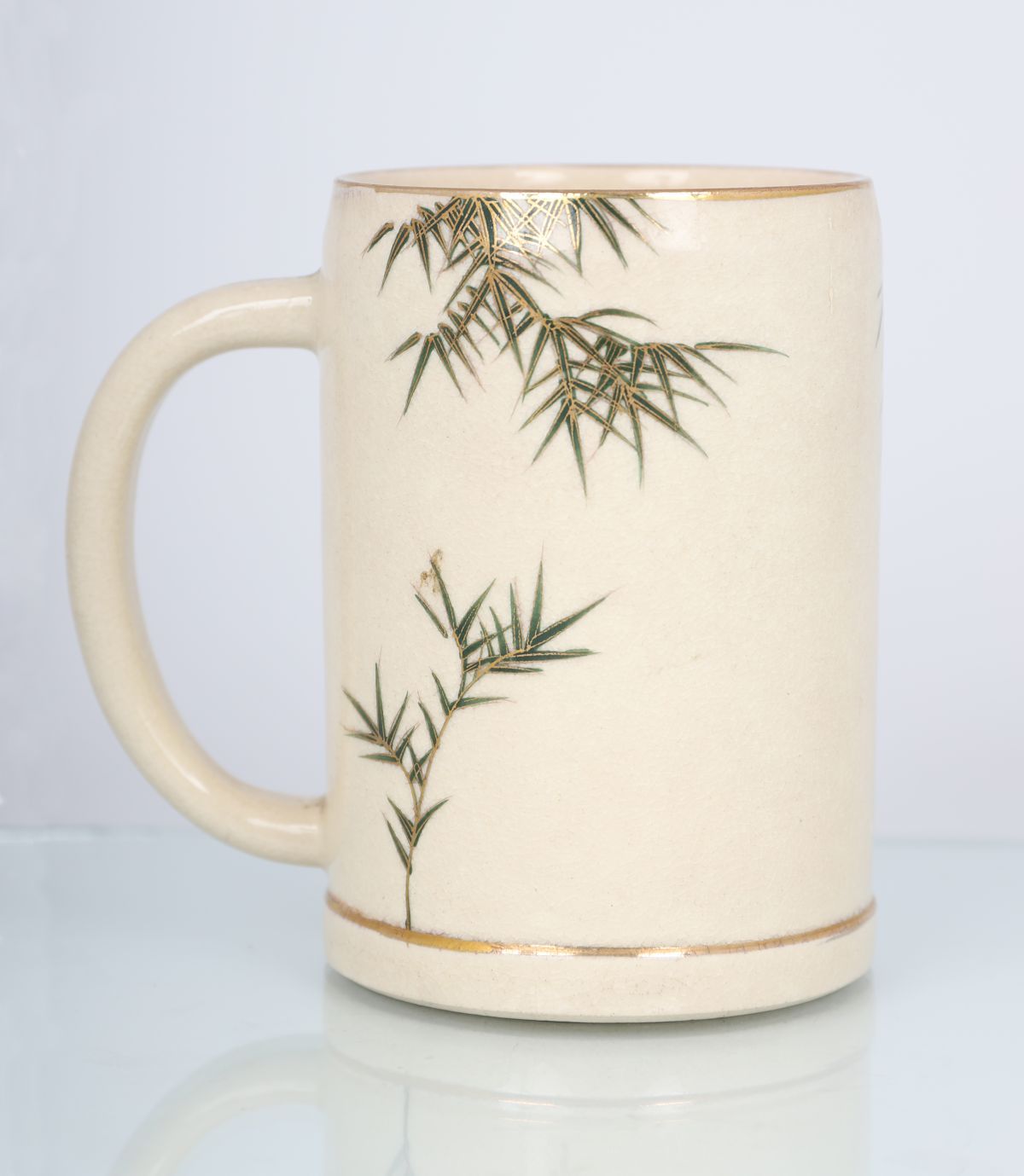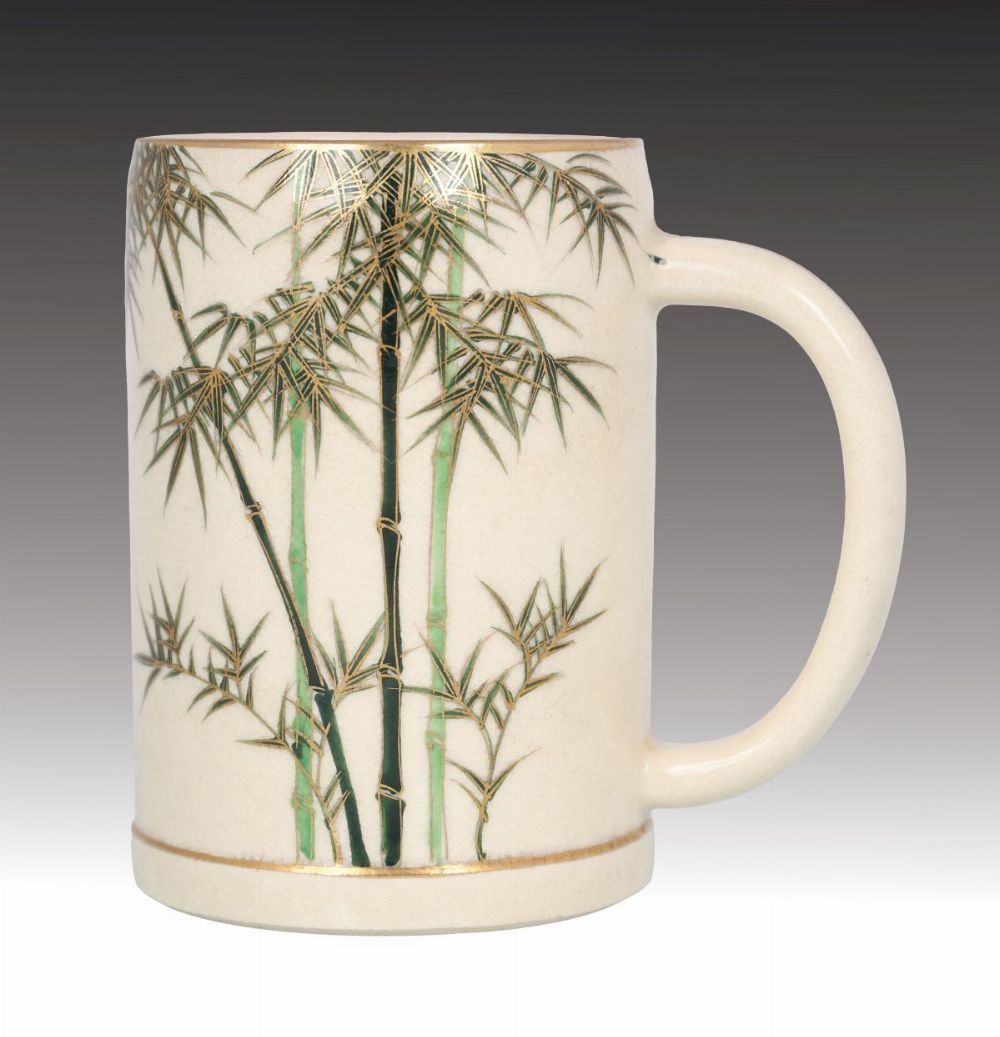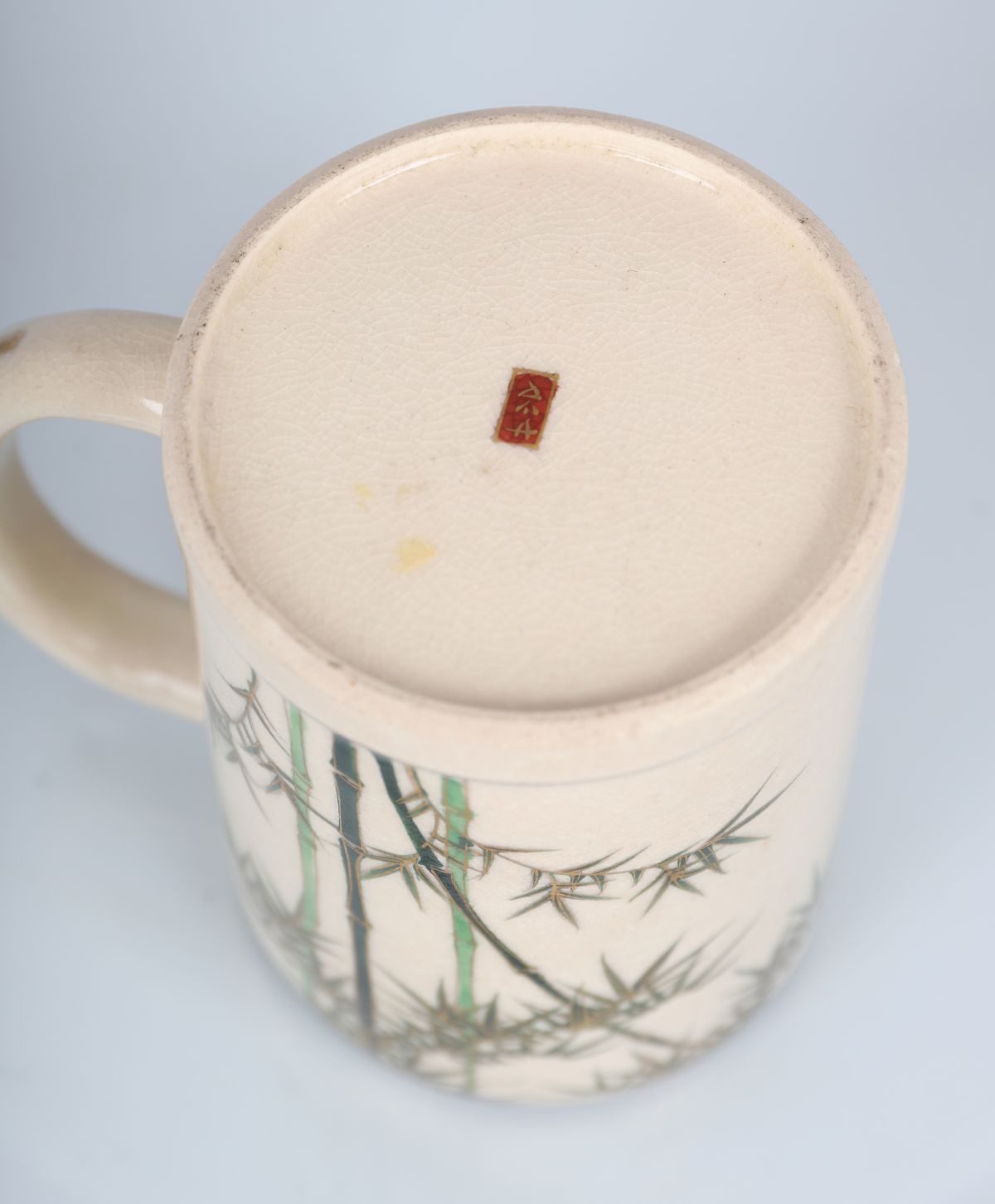 with parcel-gilt and painted bamboo decoration on a cream ground. Mark to base.