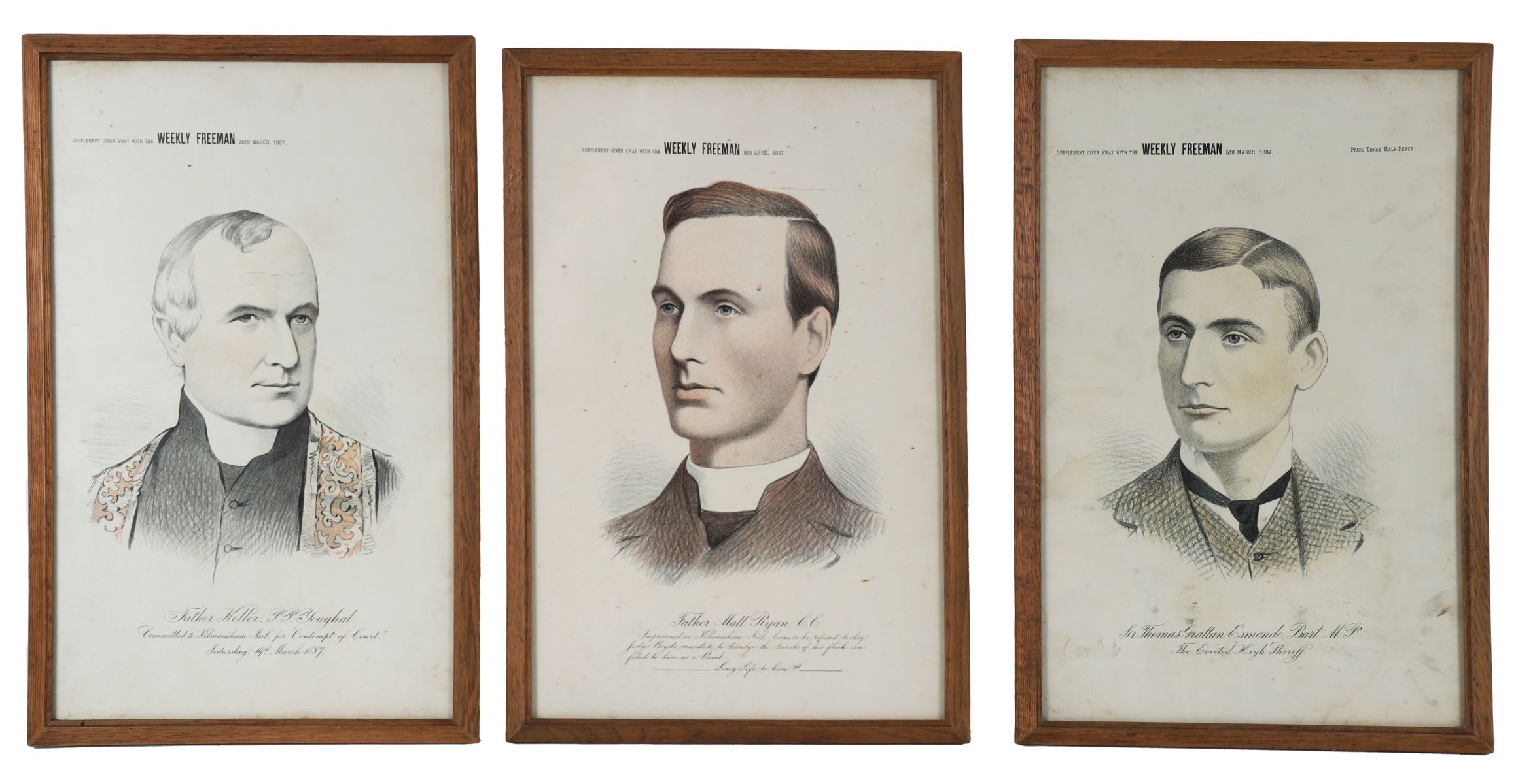 9th April 1857 Father Matt Ryan C.C. 5th March 1887 Sir Thomas Grattan Esmonde Bart M.P. 26th March 1887 Fr. Keller P.P. Youghal. Framed.