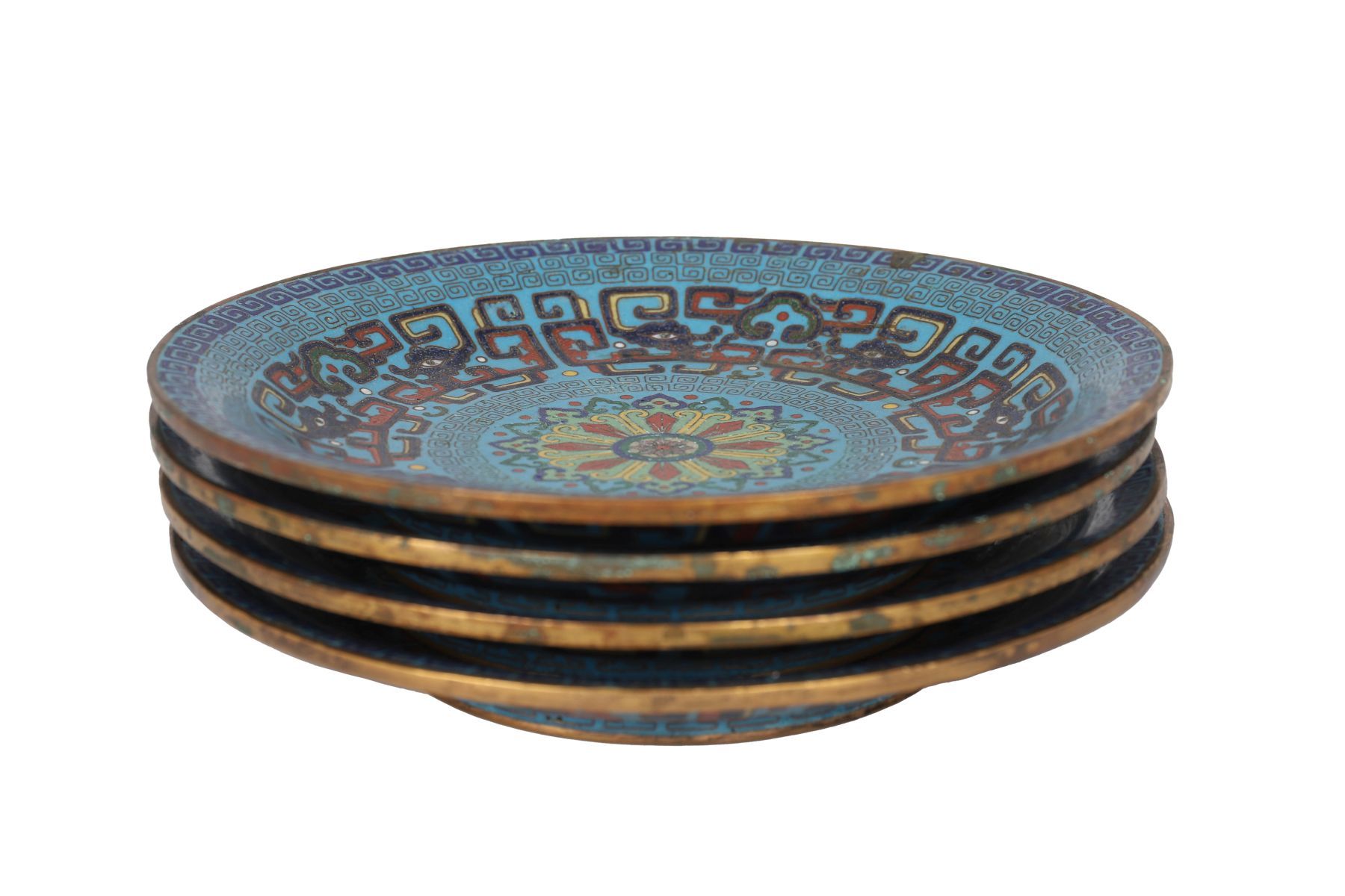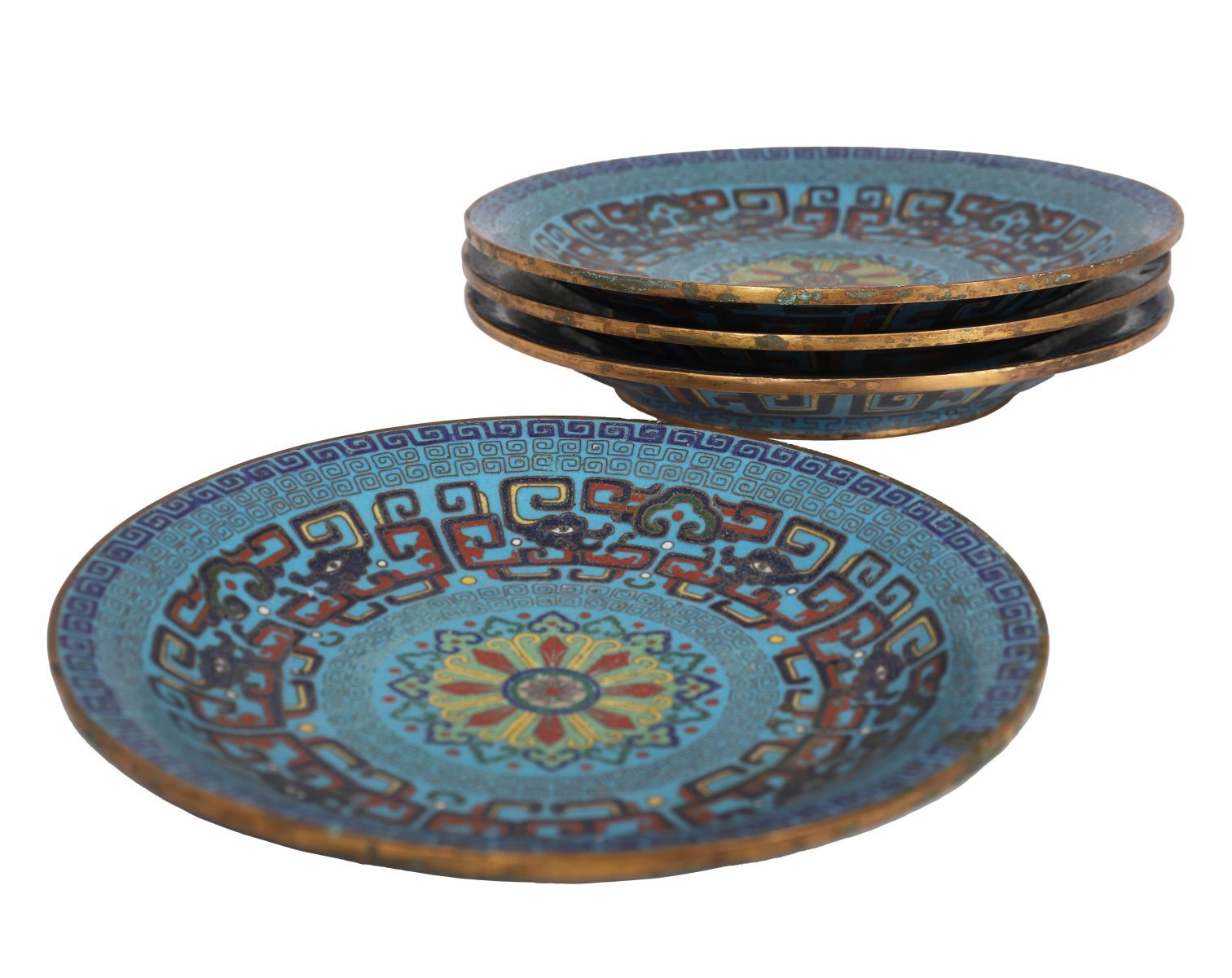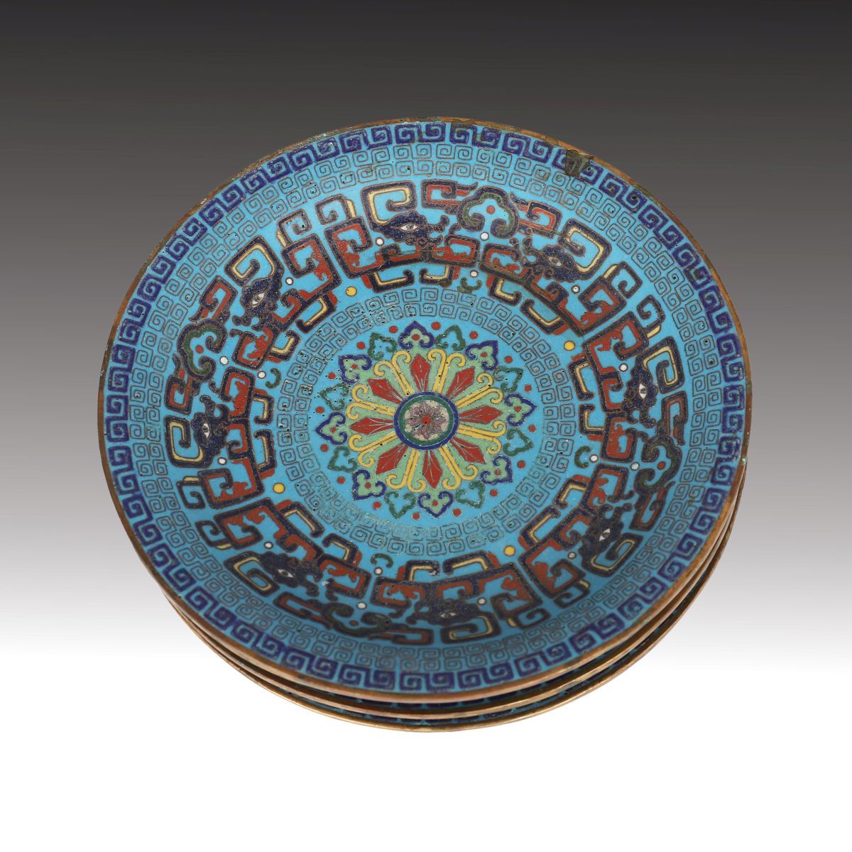 Lot 7 SET OF 4 CHINESE CLOISONNÉ ENAMEL DISHES WITH QIANLONG MARK