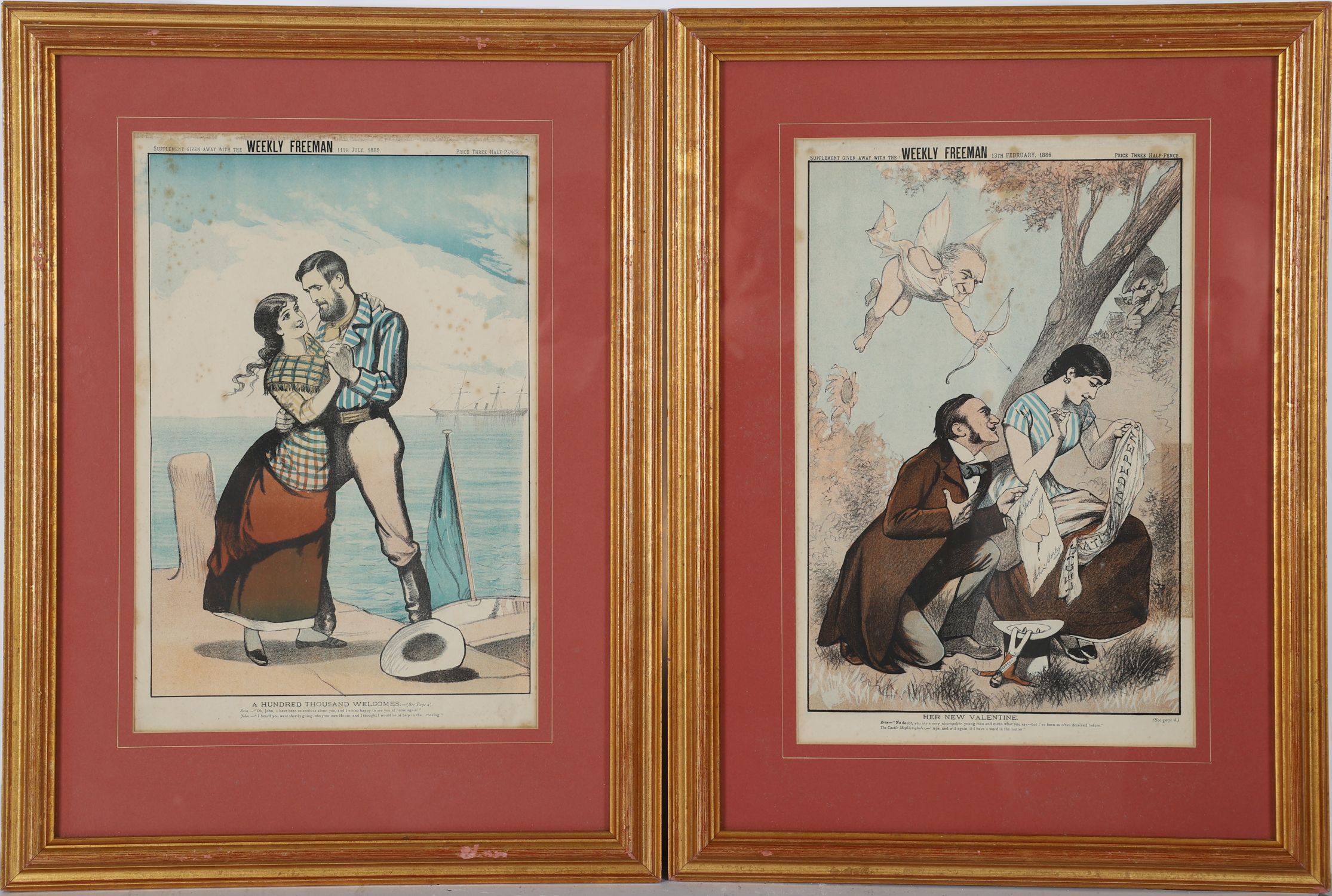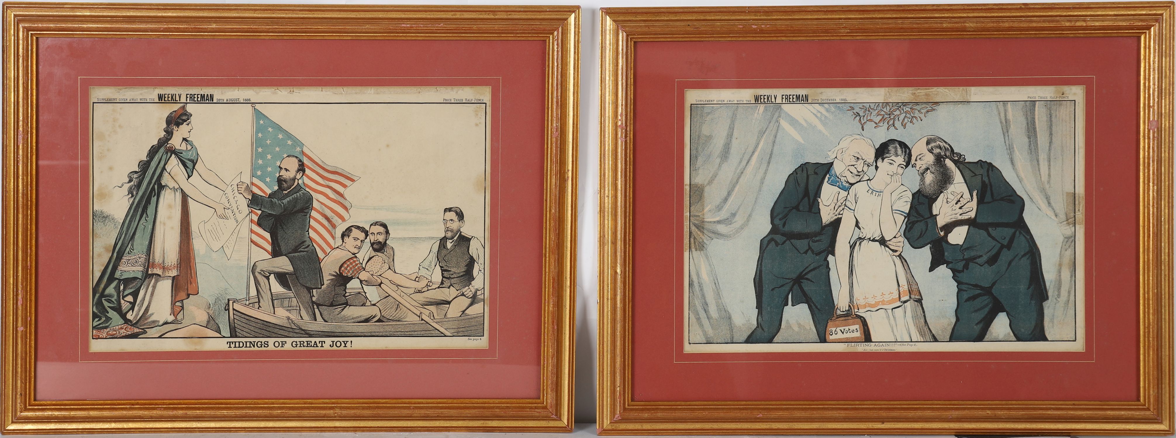 Lot 659 SET OF 6 POLITICAL CARTOONS FROM THE WEEKLY FREEMAN, DECEMBER 1885