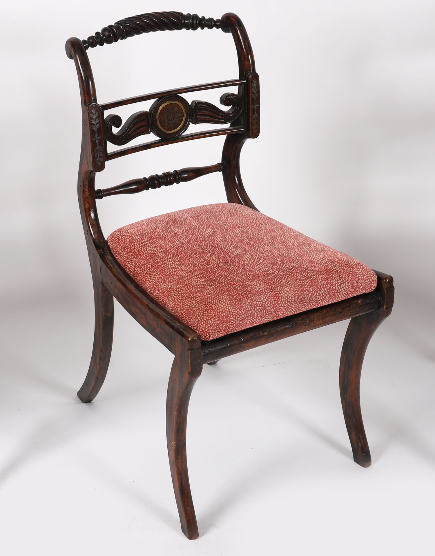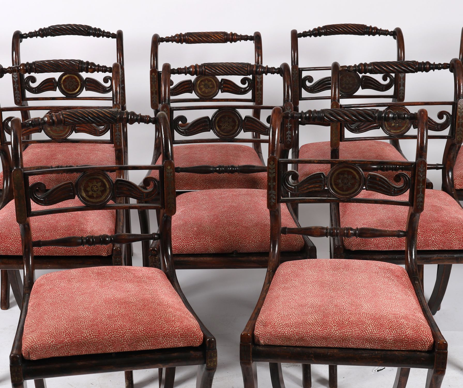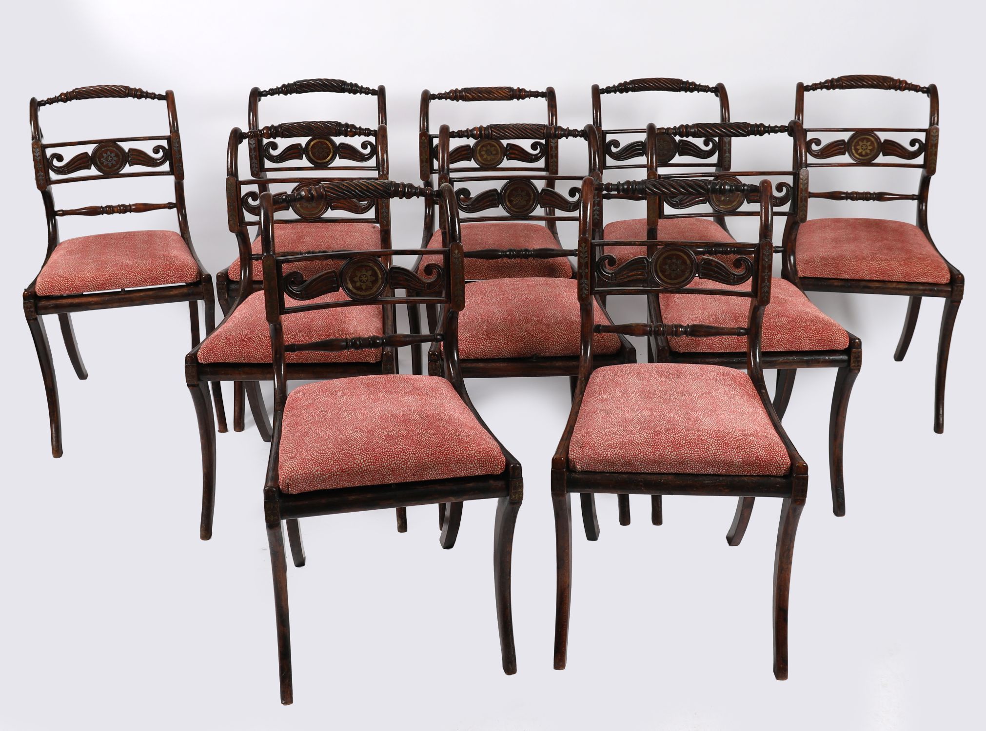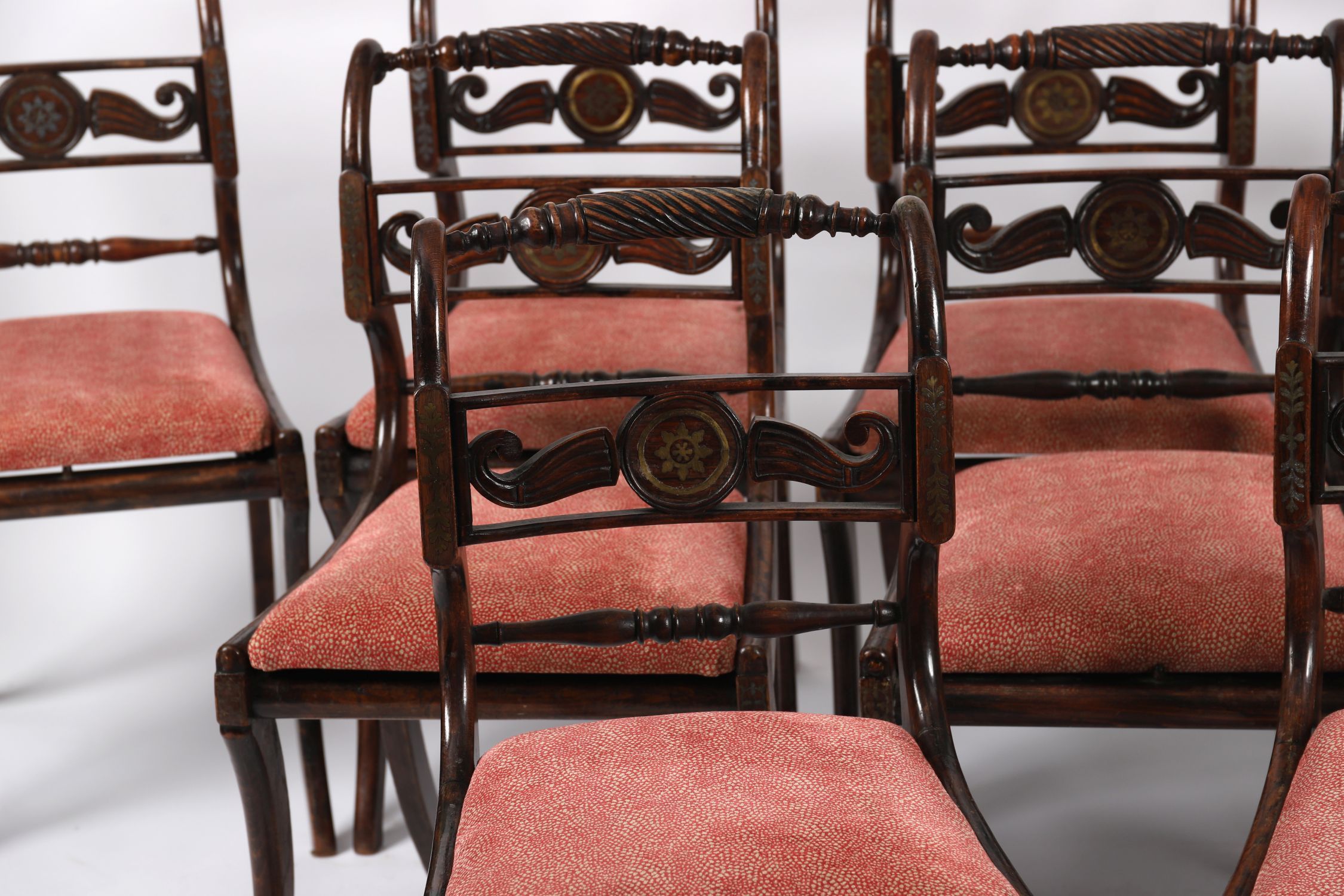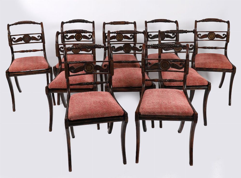 Lot 947 SET OF EIGHT CORK REGENCY SIMULATED ROSEWOOD AND BRASS INLAID DINING CHAIRS