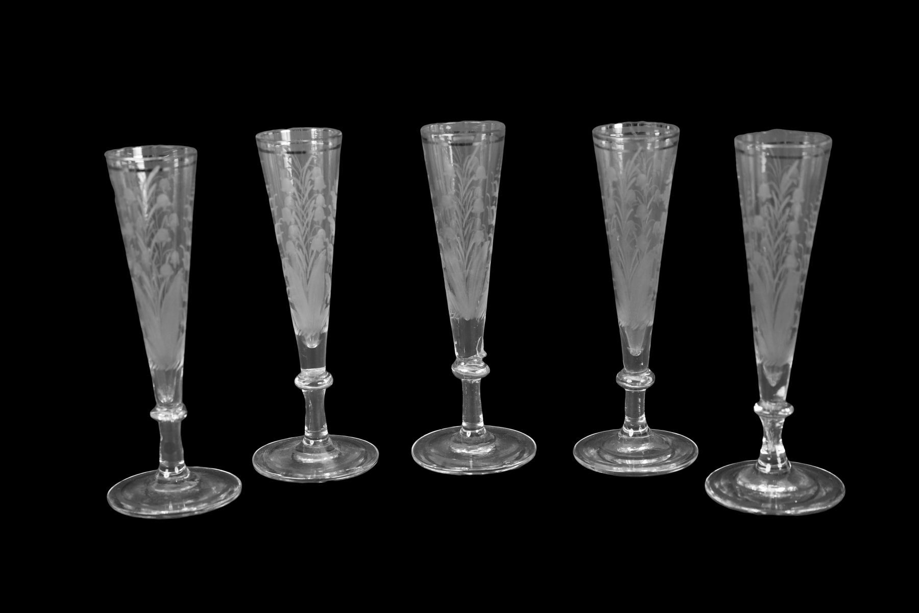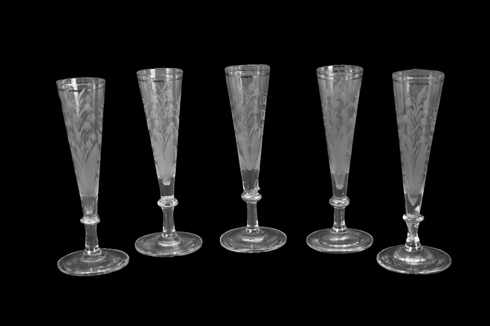Lot 85 SET OF FIVE EARLY 19TH-CENTURY FRENCH PARCEL-GILT CHAMPAGNE FLUTES