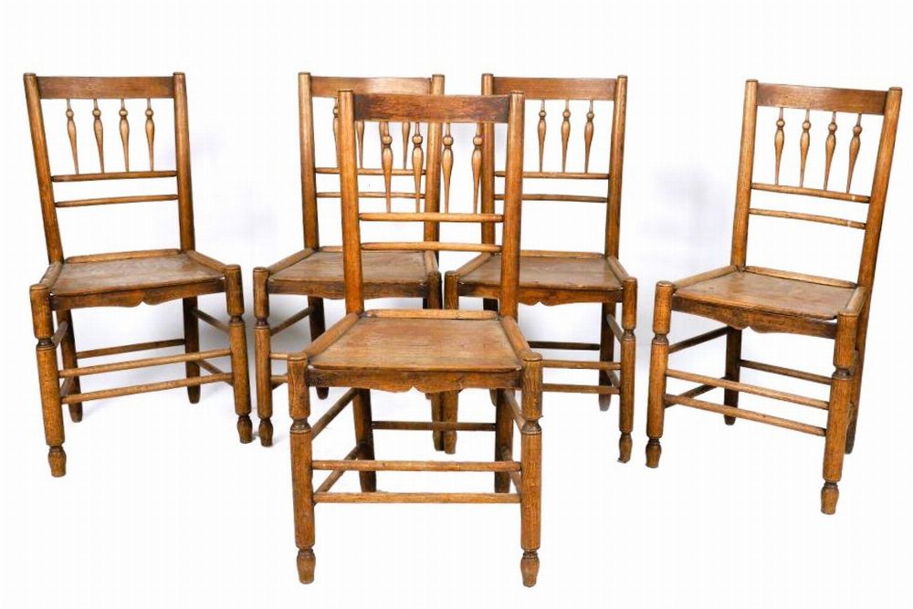 Lot 1688 SET OF FIVE ELM KITCHEN CHAIRS, SIGNED “T.H.â€
