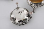 Mark of Edward Wood, London 1740. Each on three lion mask and paw feet with floral swags between, wavy flared gadroon rim and gilt interiors, engraved to the underside with the crest and coronet for the Earl Stanhope. 22 oz (682 g).