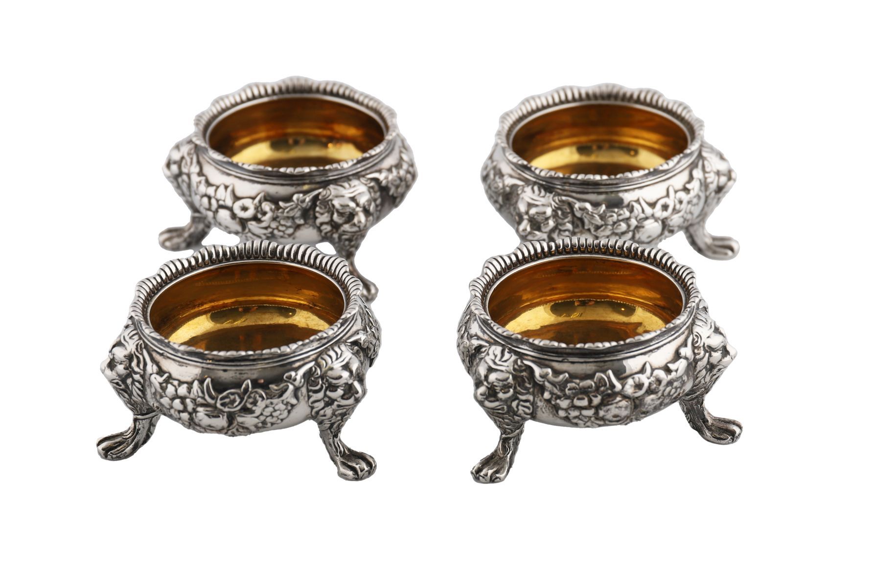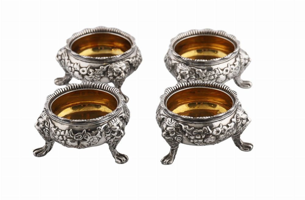 Lot 742 SET OF FOUR GEORGE II CIRCULAR SILVER SALTS