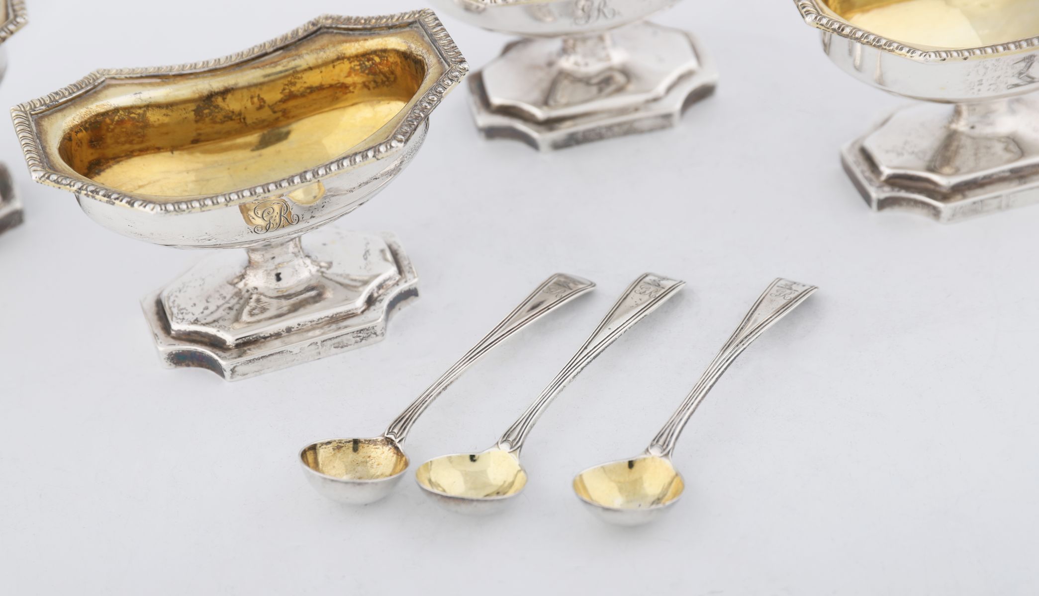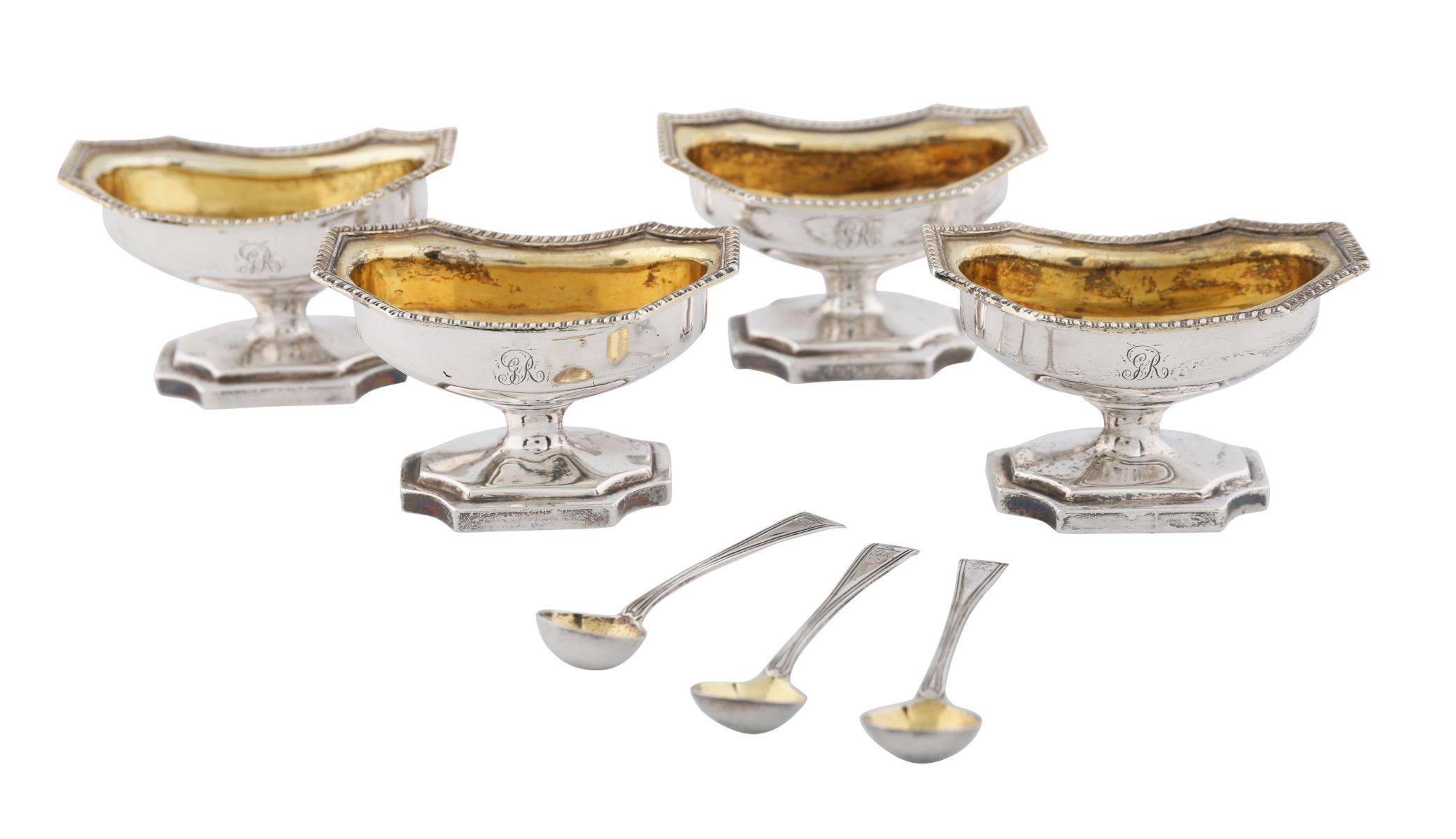 Lot 733 SET OF FOUR GEORGE III SILVER SALT CELLARS
