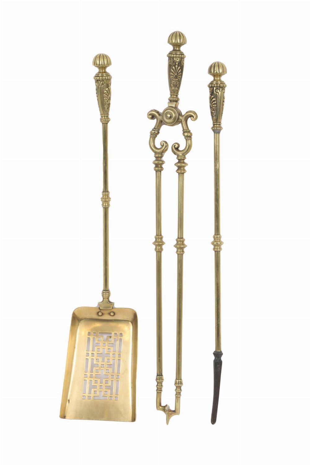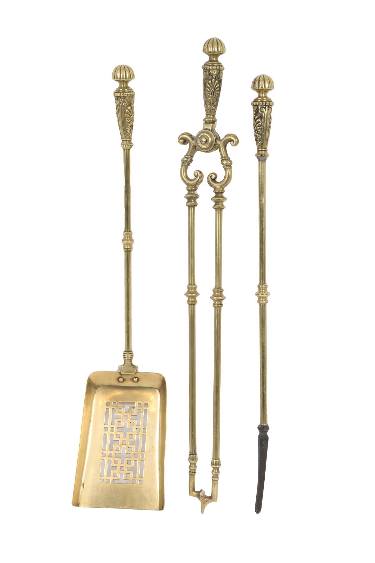 Lot 102 SET OF ORNATE 19TH-CENTURY BRASS FIRE IRONS