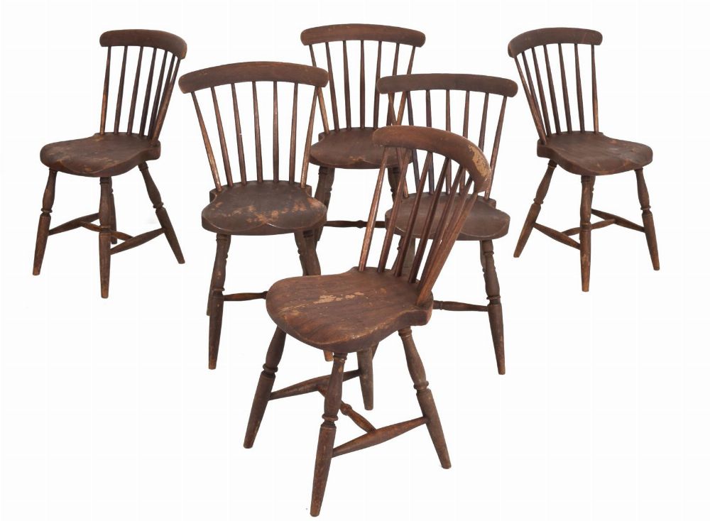 Lot 1564 SET OF SIX 19TH-CENTURY PINE KITCHEN DINING CHAIRS