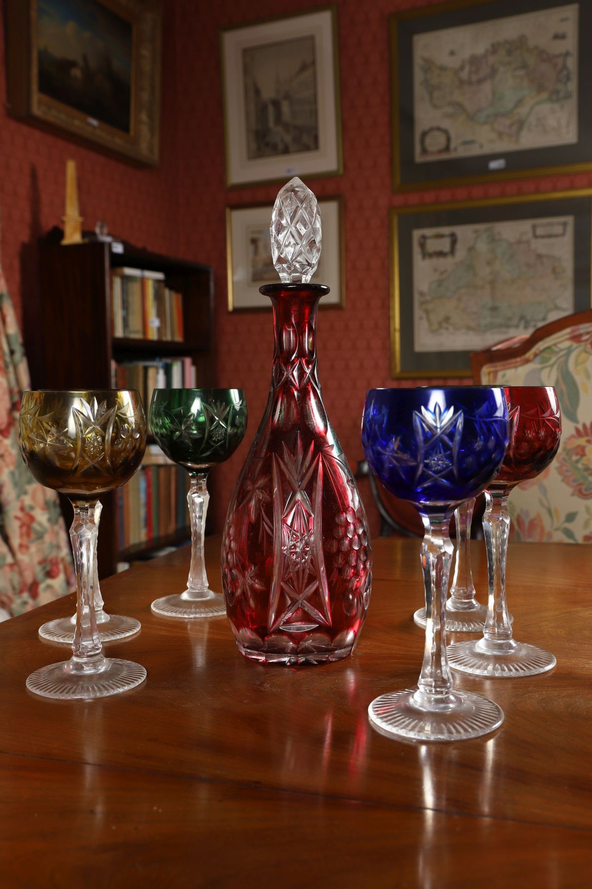 Lot 711 SET OF SIX CUT CRYSTAL WINE GOBLETS AND A MATCHING DECANTER