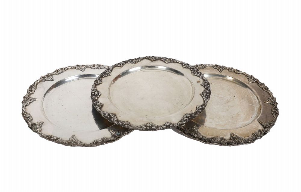Lot 43 SET OF SIX SILVER-PLATED SOUPLATES