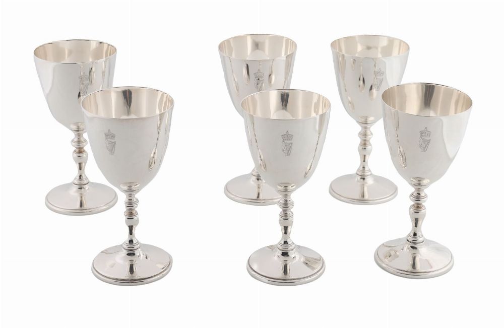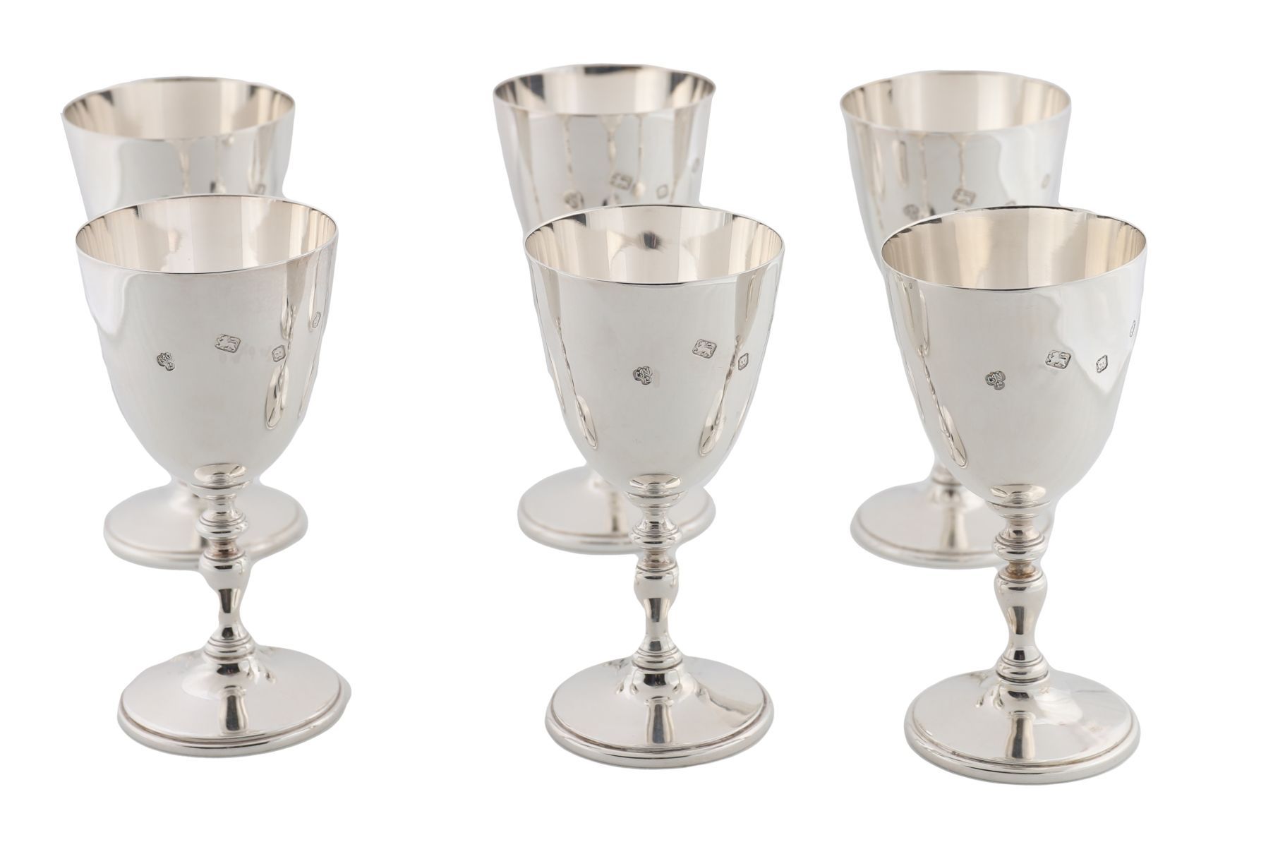 Lot 592 SET OF SIX SOLID SILVER WINE GOBLETS